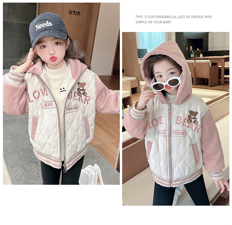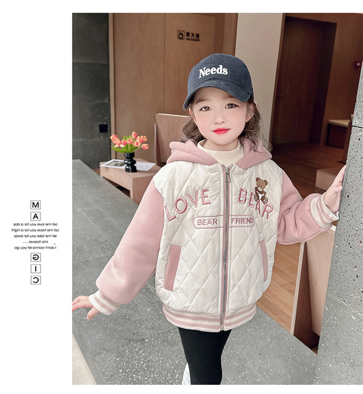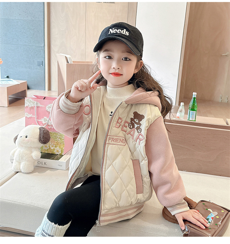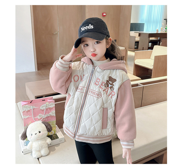여자 곰 퀼트 면 야구 세트 어린이 늦은 가을과 겨울 2024 새로운 스타일 소녀 스타일라인 코트 아동복 트렌디