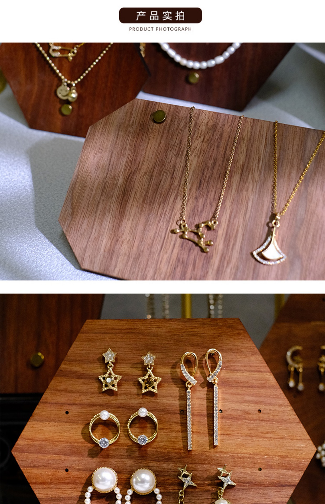 首饰展示架切割耳钉板耳环项链架子胡桃木手镯架饰品陈列拍摄昌凌