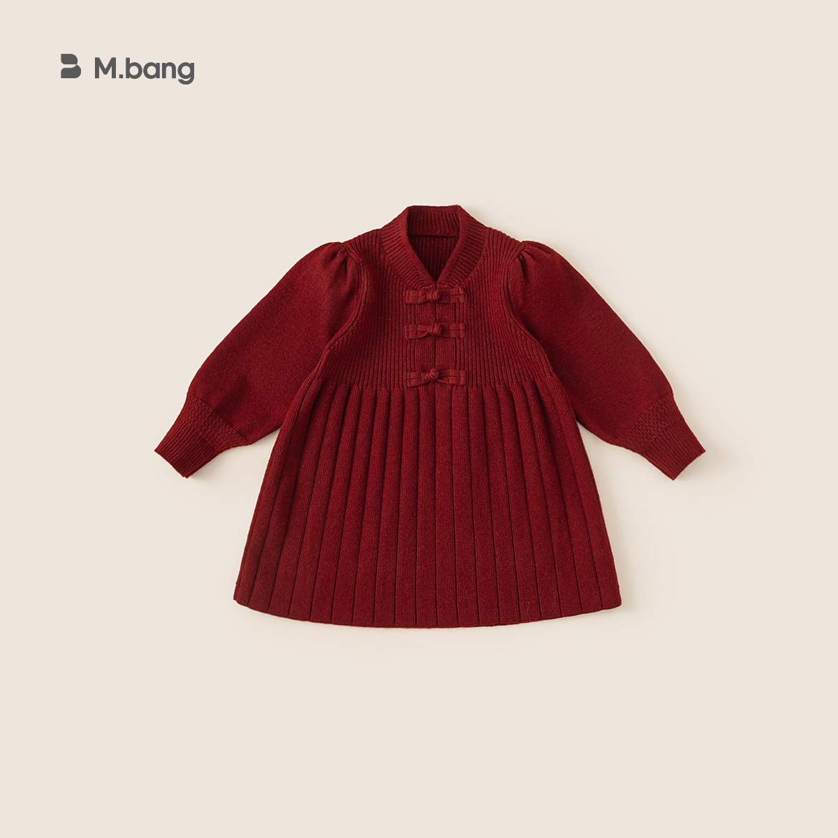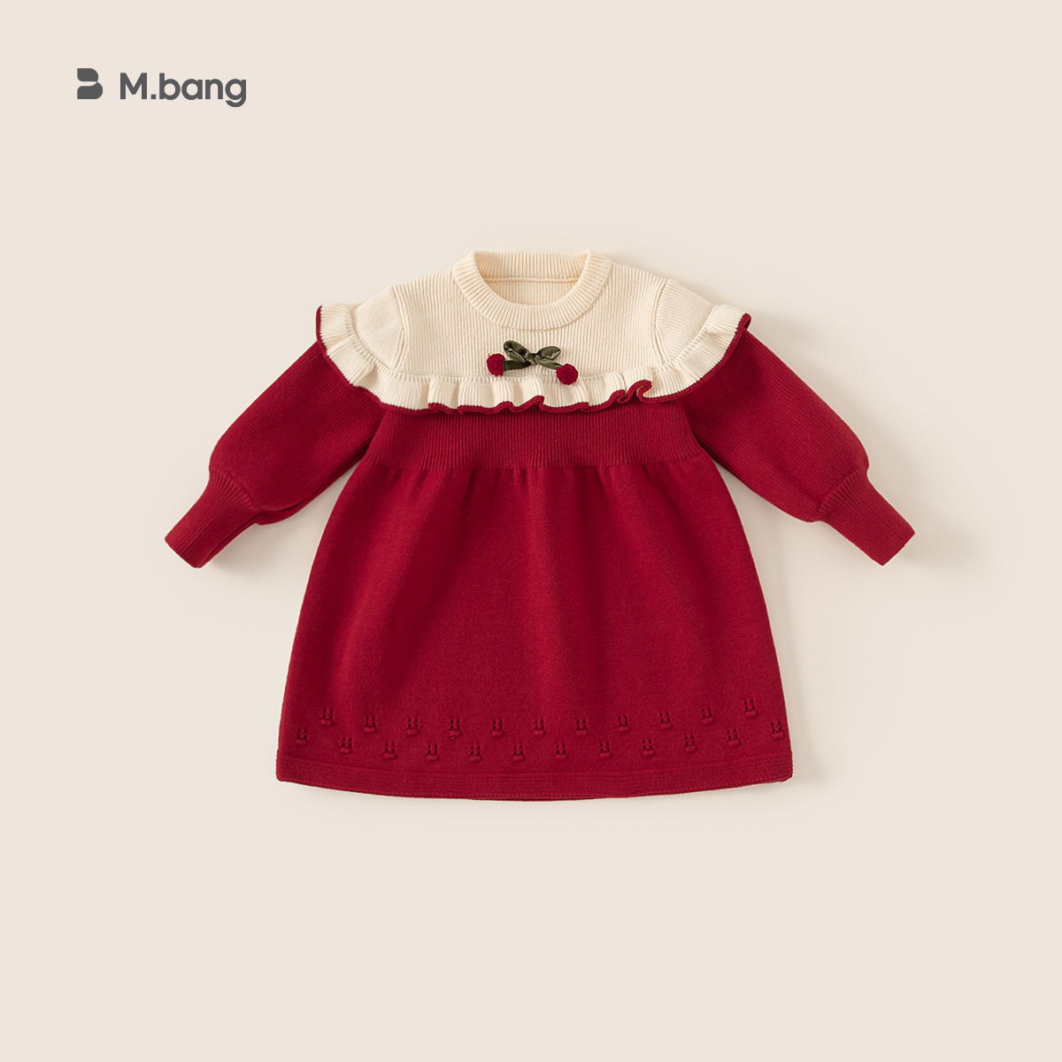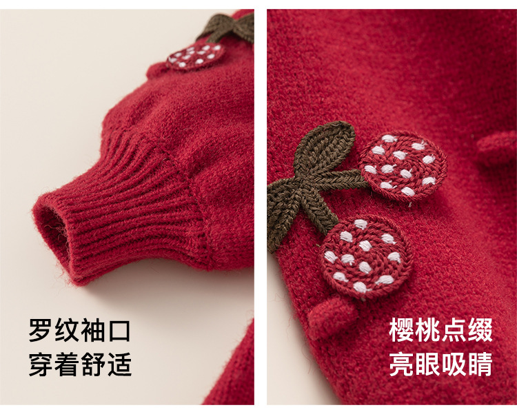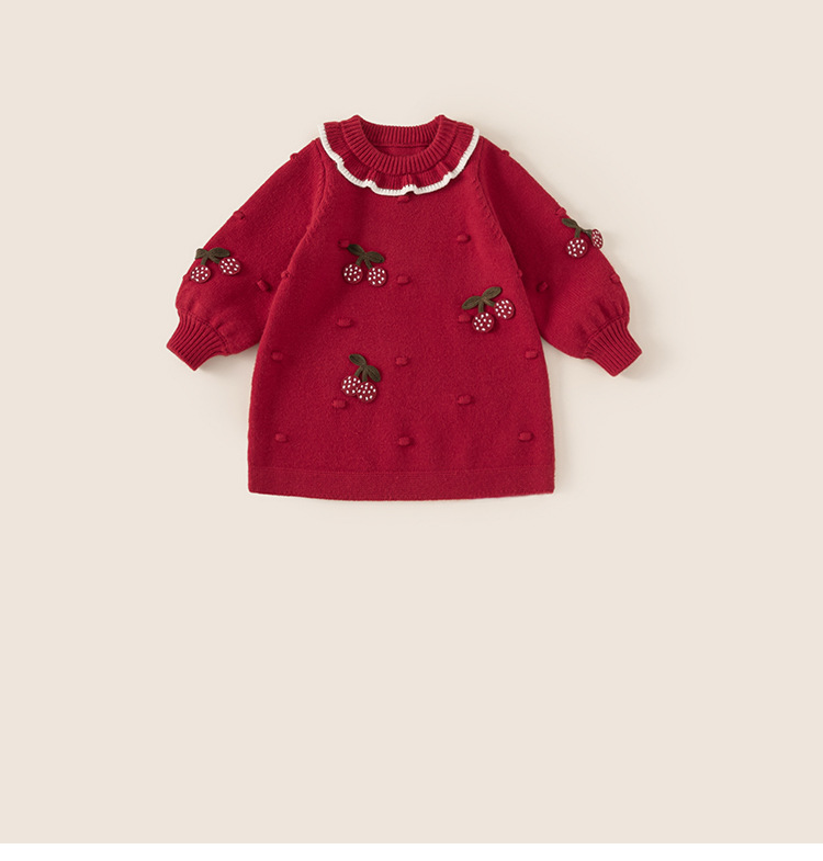 유바오 어린이 의류 소녀의 빨간 스웨터 원피스 가을과 겨울 새로운 크리스마스 소녀의 세련된 체리 니트 원피스 새해