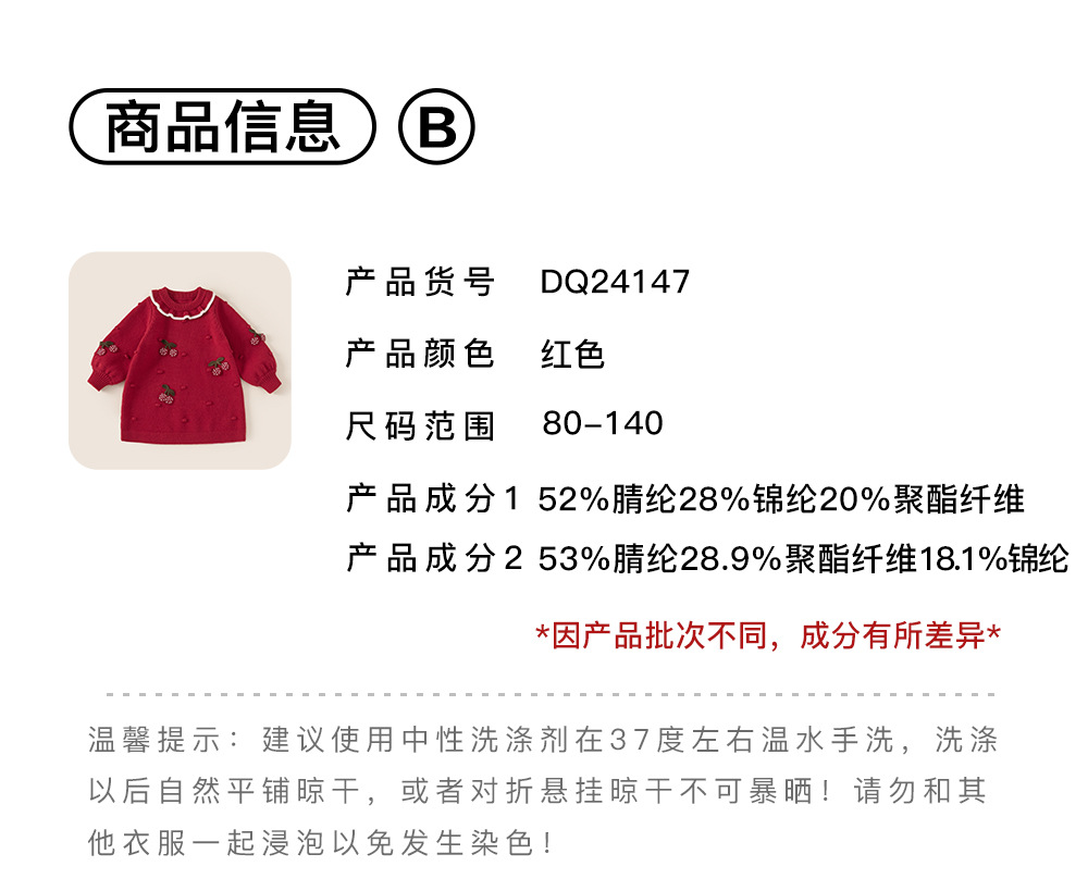 유바오 어린이 의류 소녀의 빨간 스웨터 원피스 가을과 겨울 새로운 크리스마스 소녀의 세련된 체리 니트 원피스 새해스토어 가기