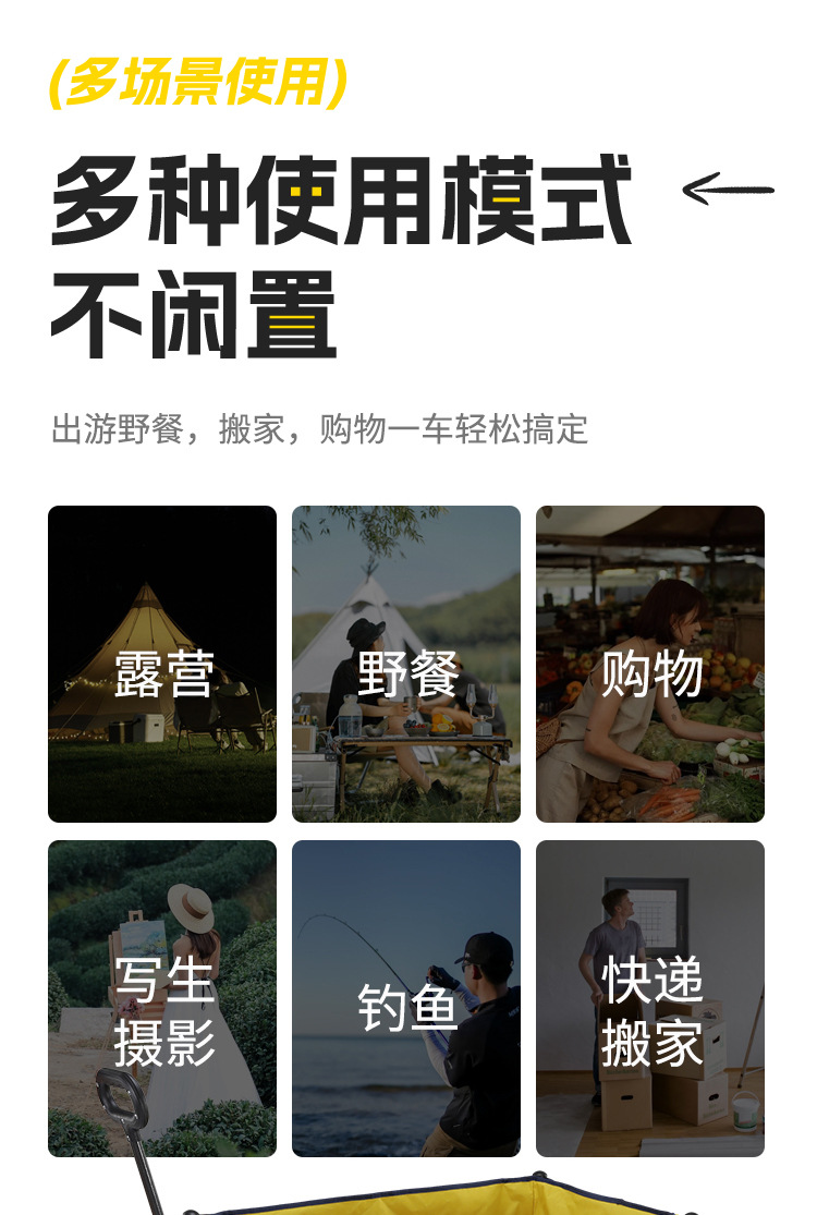 새로운 모임은 야외 캠핑 캠핑 카트 캠프 자동차 접이식 휴대용 피크닉 작은 푸시 풀 트레일러를 열 수 없습니다.스토어 가기