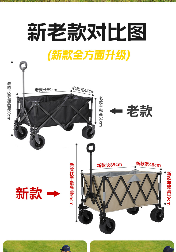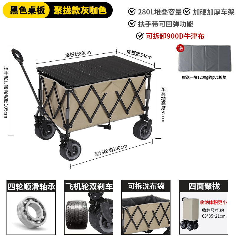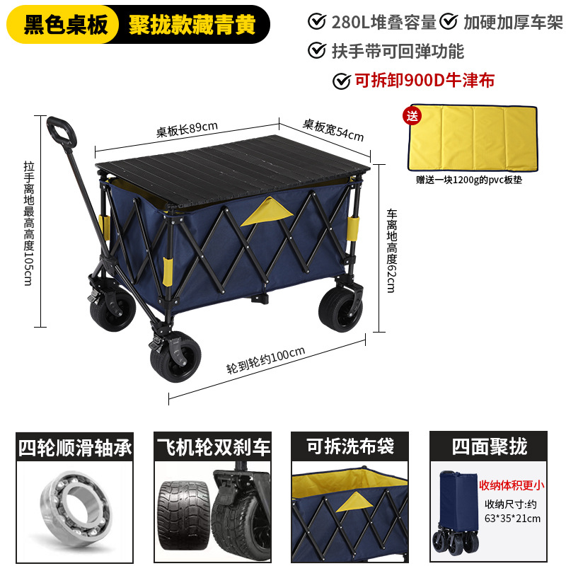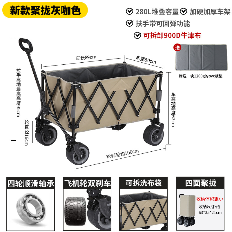 새로운 모임은 야외 캠핑 캠핑 카트 캠프 자동차 접이식 휴대용 피크닉 작은 푸시 풀 트레일러를 열 수 없습니다.