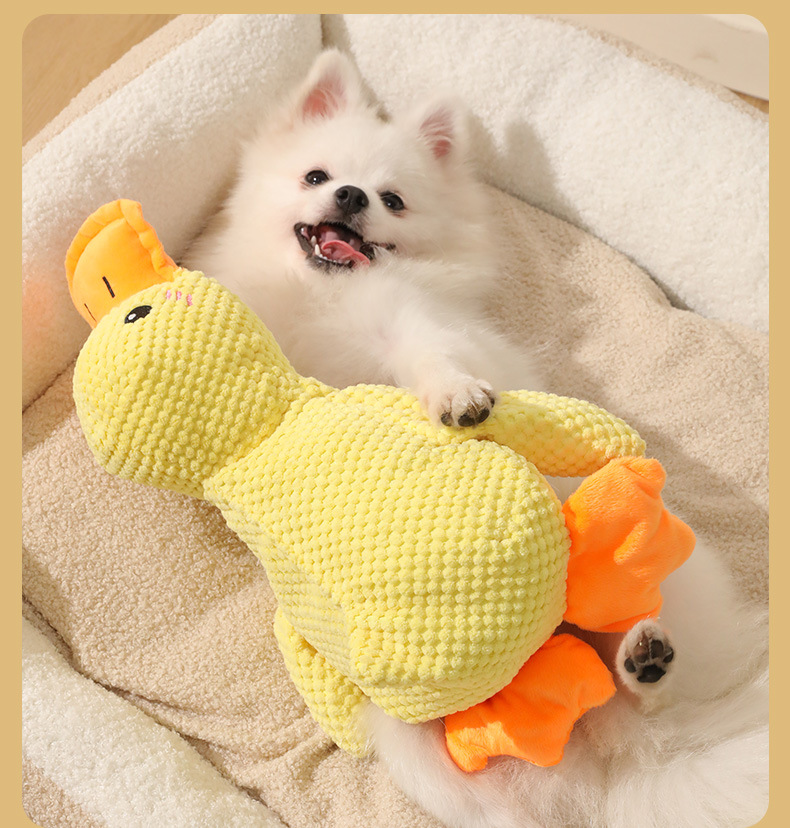 봉제 잠자는 오리 개 장난감 어금니 소리 구호 중소 개 애완 동물 소리 장난감 작은 노란색 오리 도매스토어 가기