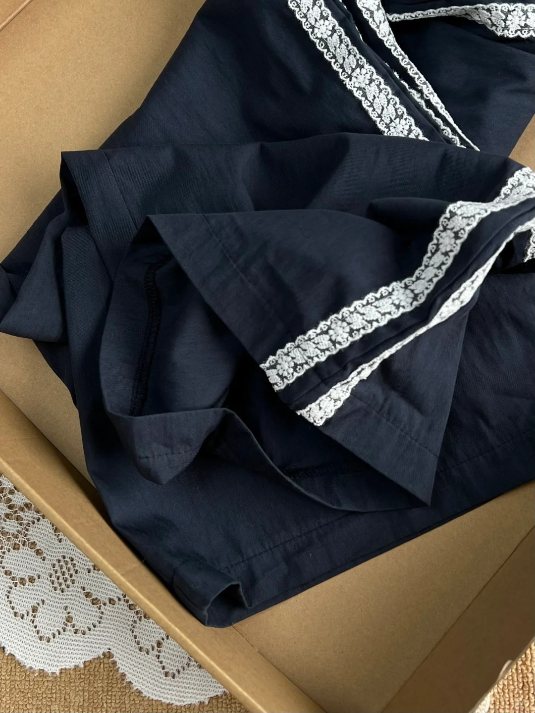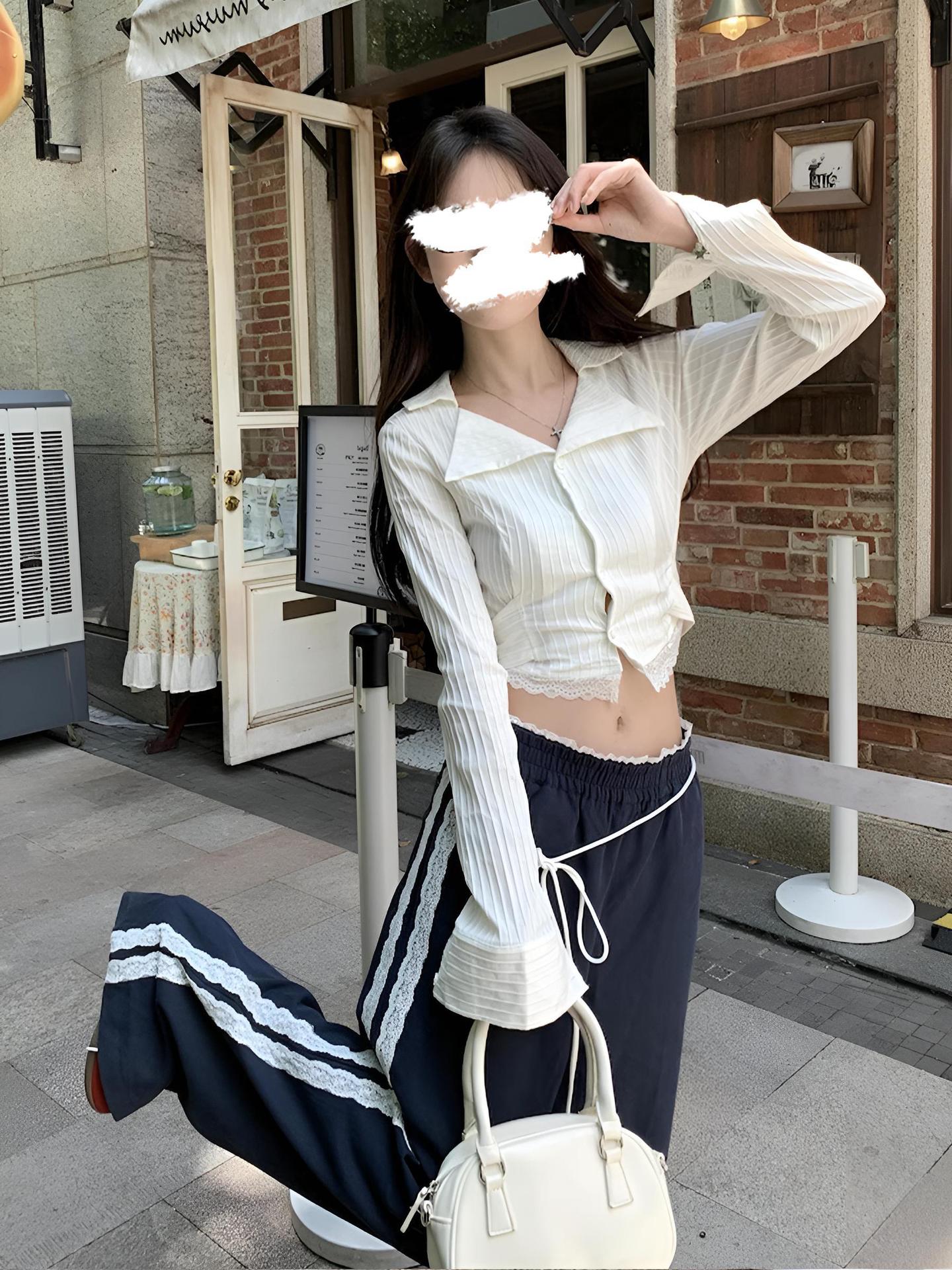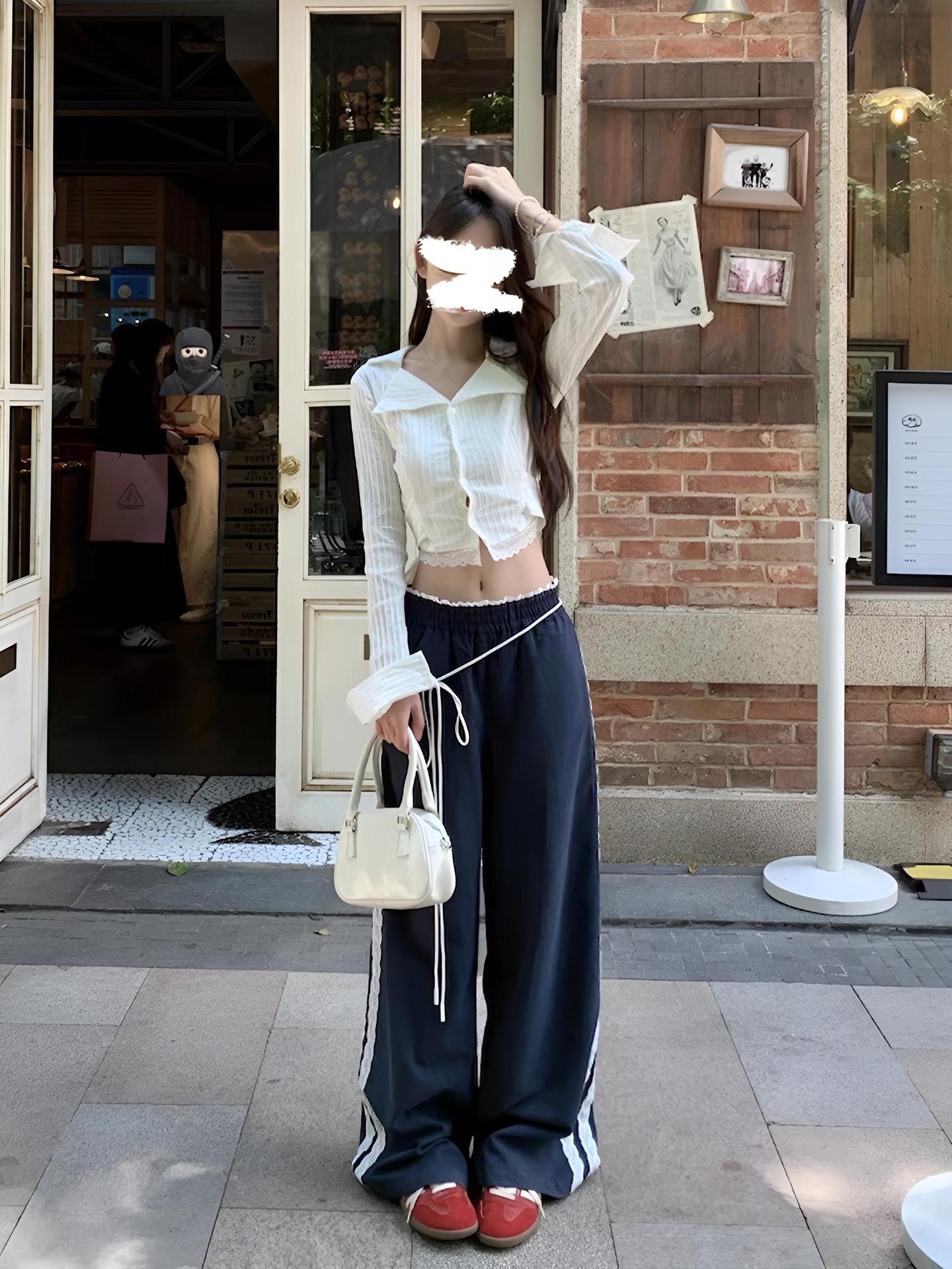 티베트 블루 레이스 바느질 디자인 센스 캐주얼 바지 여성의 봄과 가을 새로운 틈새 느슨한 올매치 스트레이트 바지스토어 가기