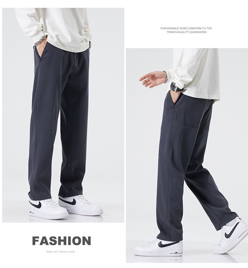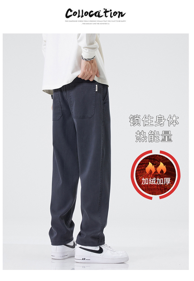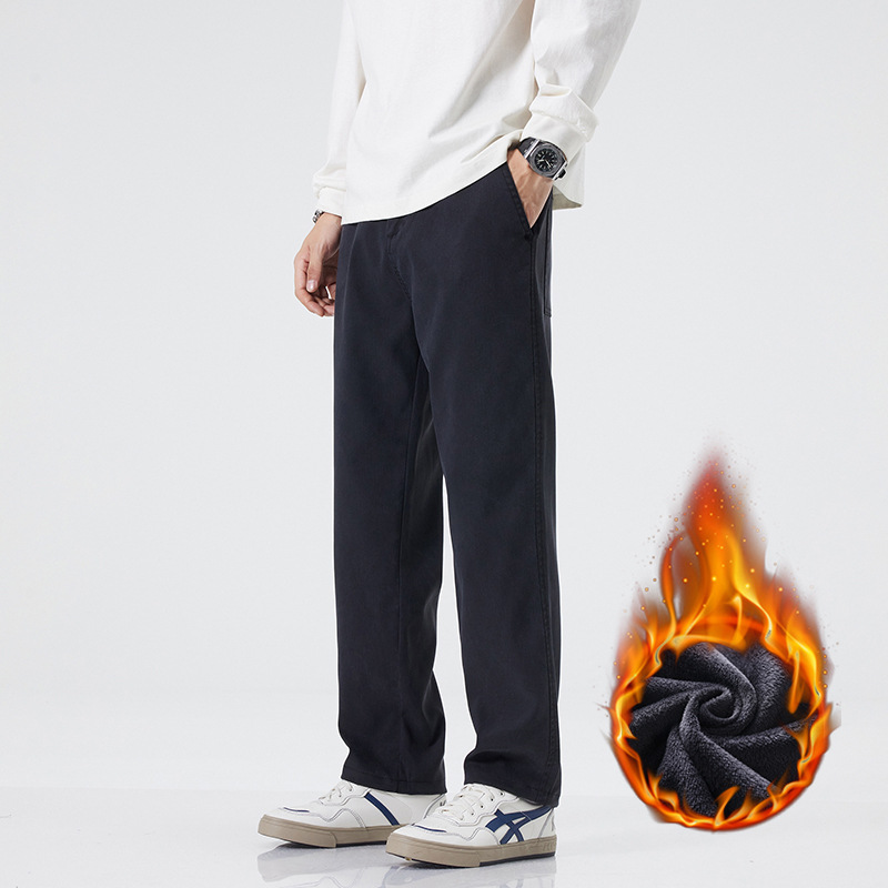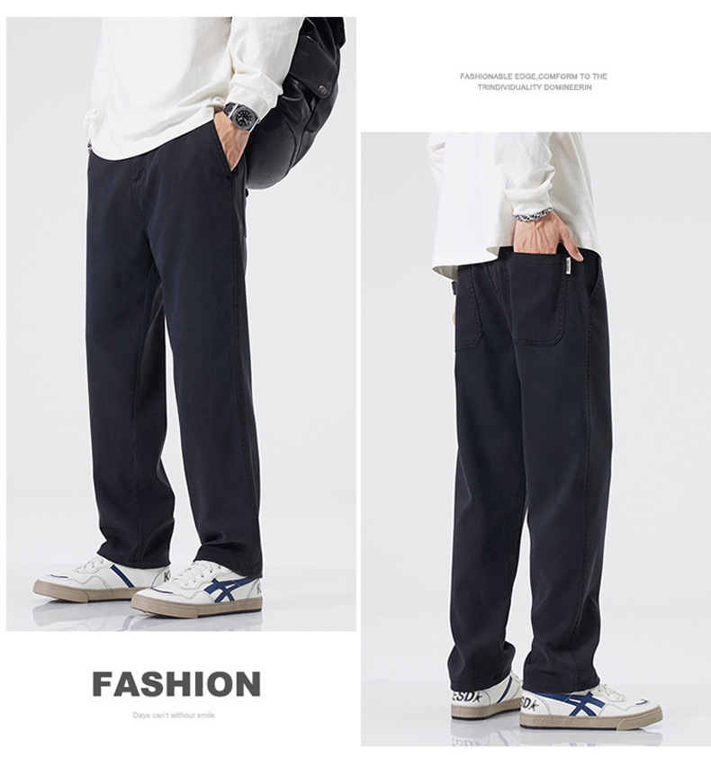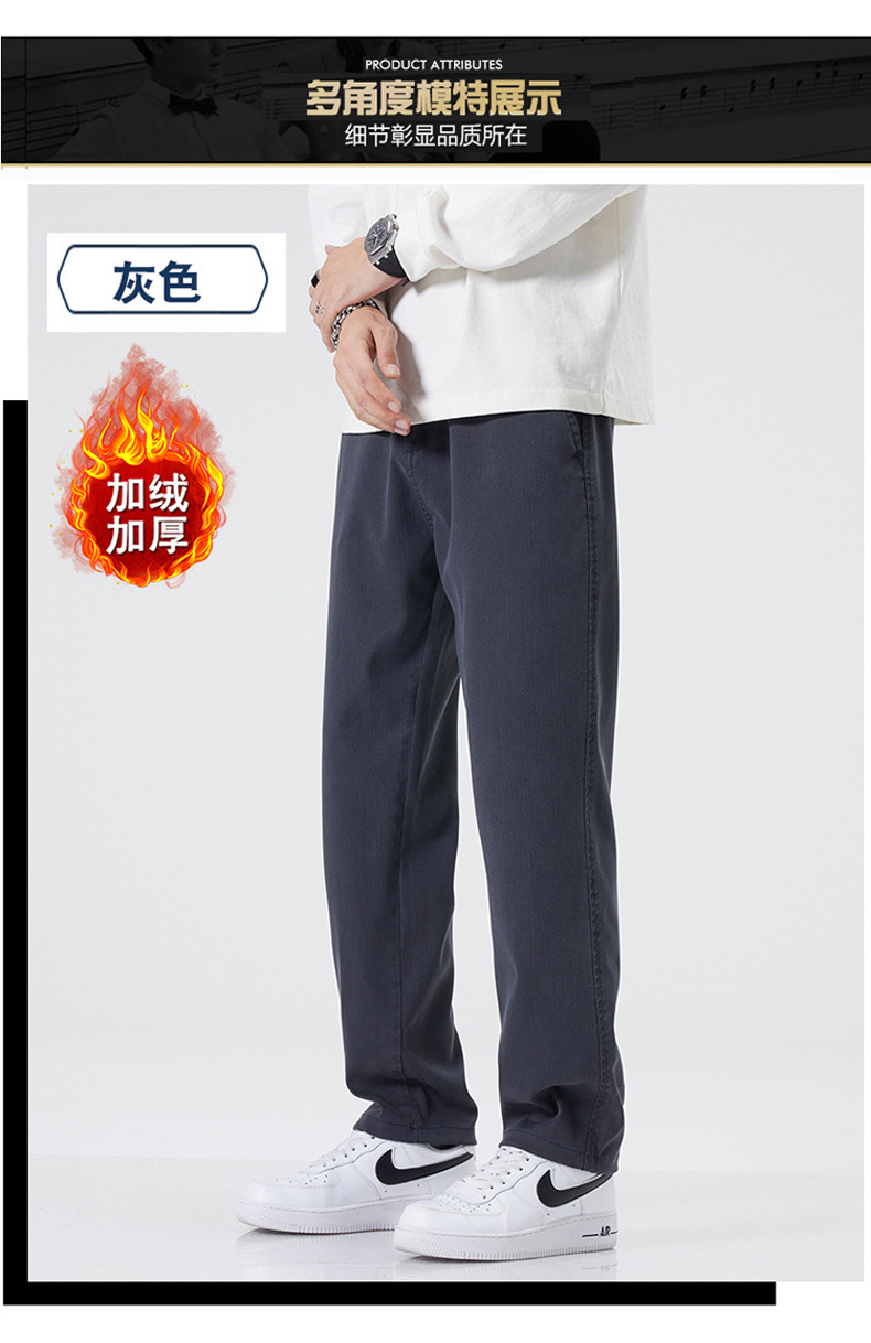두꺼운 겨울 와이드 레그 남성 캐주얼 바지, 심플하고 슬림하며 다재다능한 남성 바지, 드레이프 남성 봄, 가을 남성용 트렌디 브랜드 바지스토어 가기