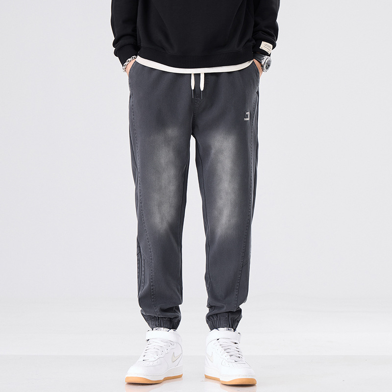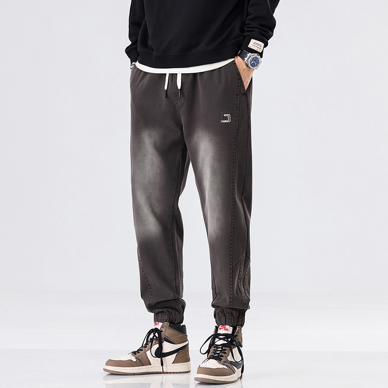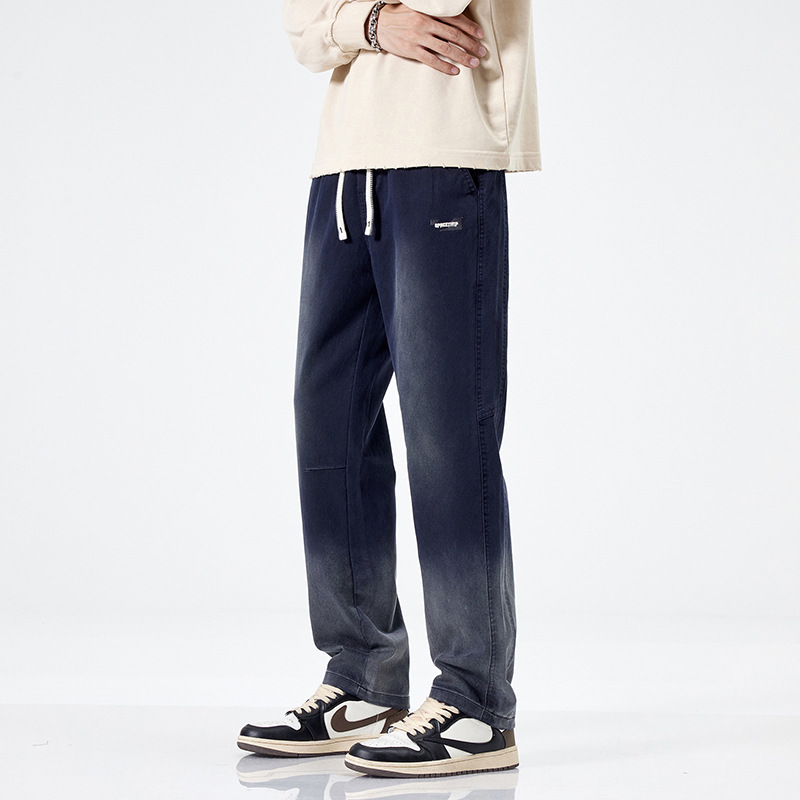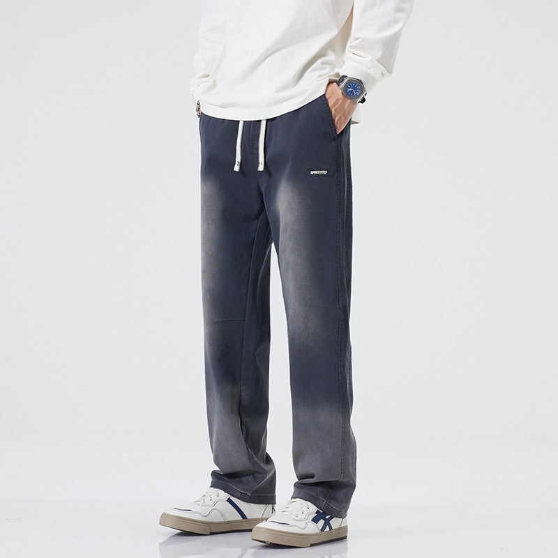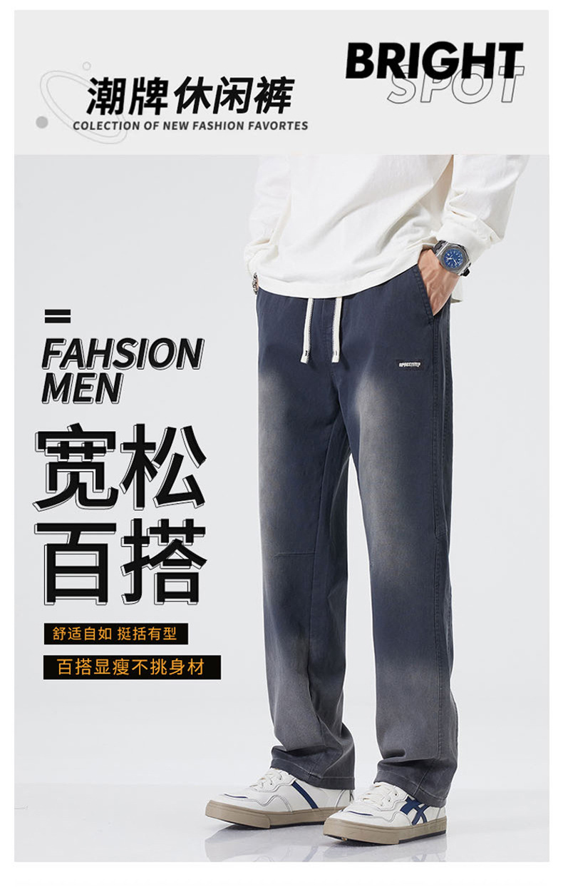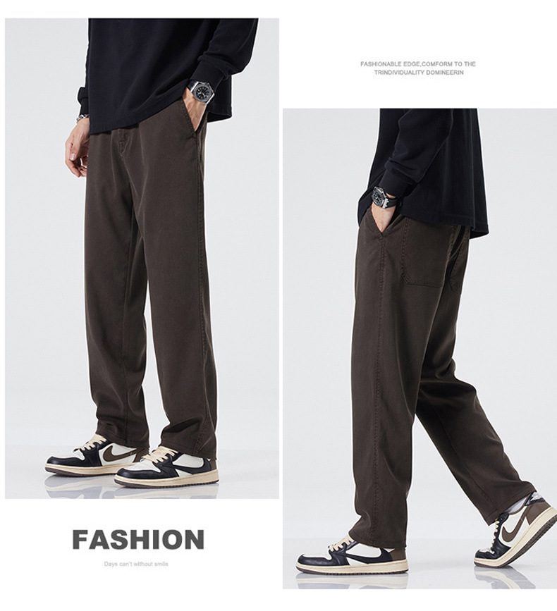 두꺼운 겨울 와이드 레그 남성 캐주얼 바지, 심플하고 슬림하며 다재다능한 남성 바지, 드레이프 남성 봄, 가을 남성용 트렌디 브랜드 바지스토어 가기