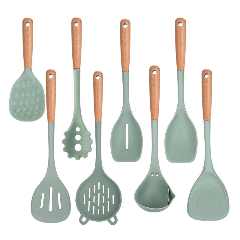2024 새로운 너도밤 손잡이 실리콘 주방용품 세트 주방 비 스틱 웍 삽 수프 스푼 가정용 실리콘 삽
