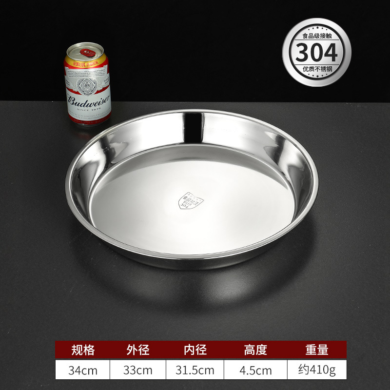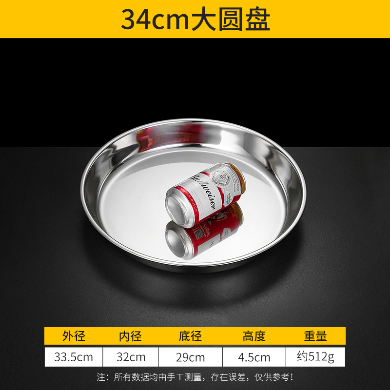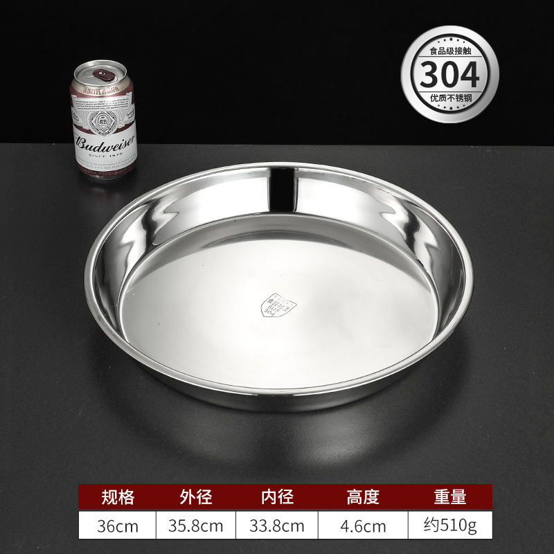 特厚304不锈钢圆盘糕盘凉皮锣锣 商用大号平盘深盘托盘菜盘蒸昌凌스토어 가기