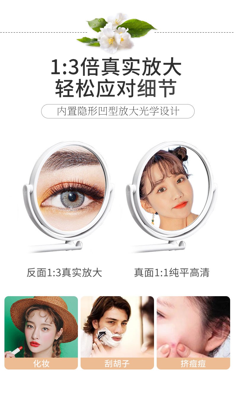 욕실 벽걸이형 소형 거울, 펀치 없는 확대 욕실 화장대 기숙사 흡입컵 접이식 화장거울 Wall Changling스토어 가기