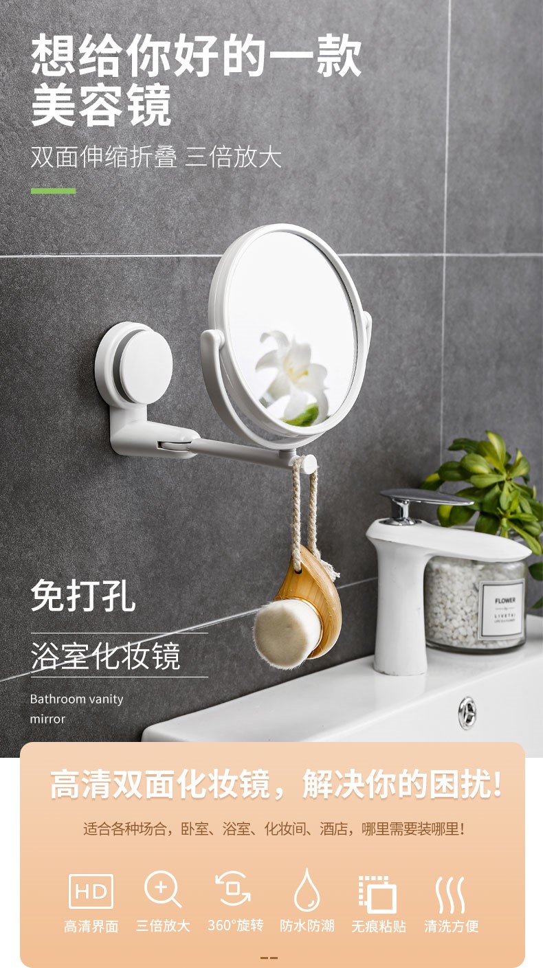 욕실 벽걸이형 소형 거울, 펀치 없는 확대 욕실 화장대 기숙사 흡입컵 접이식 화장거울 Wall Changling