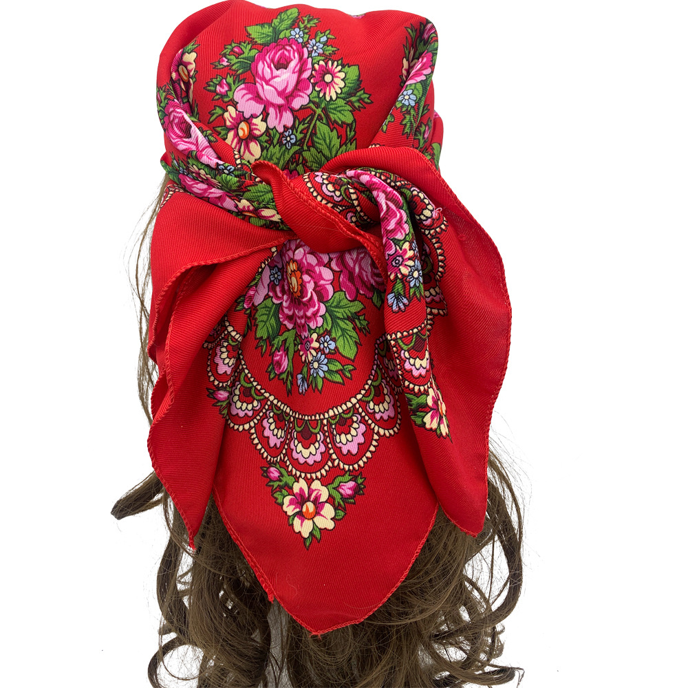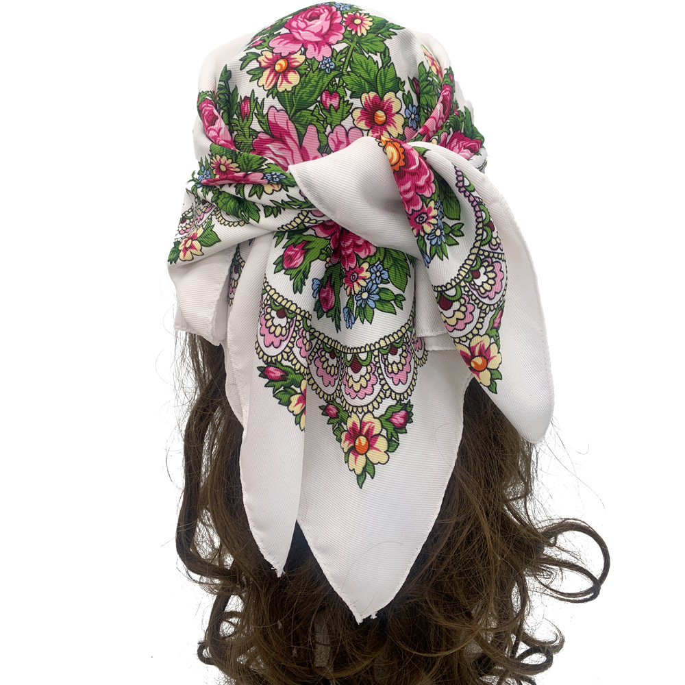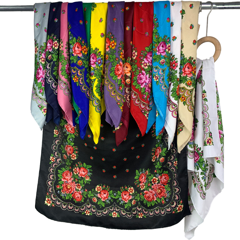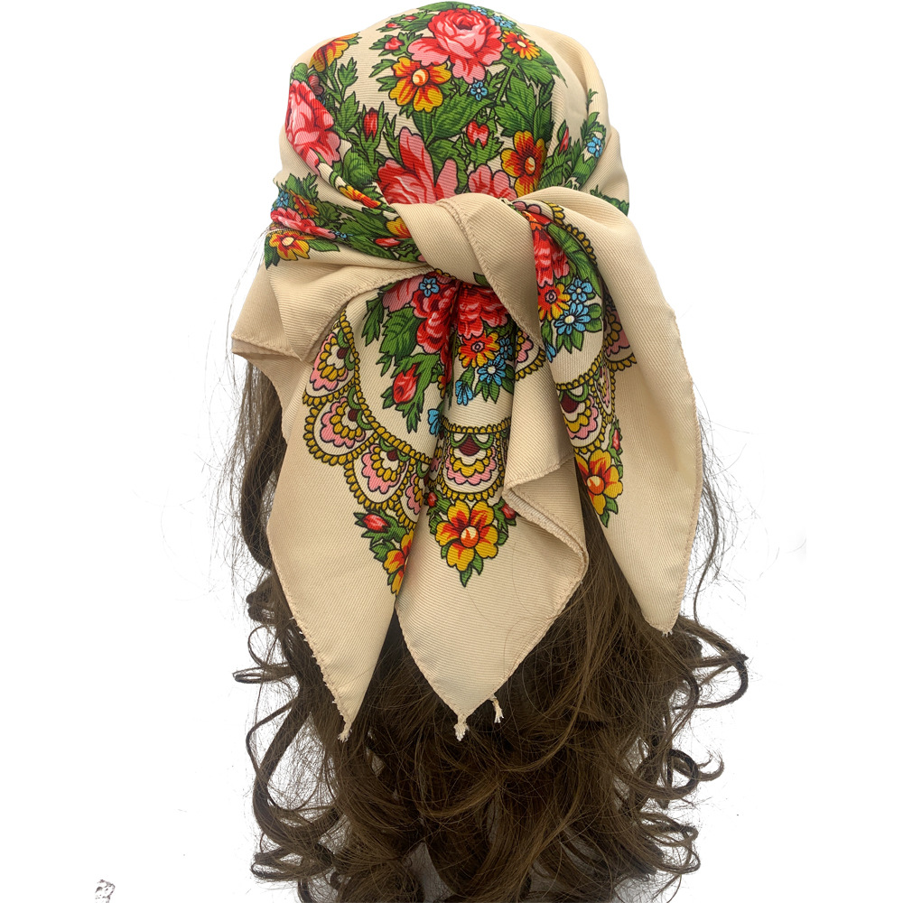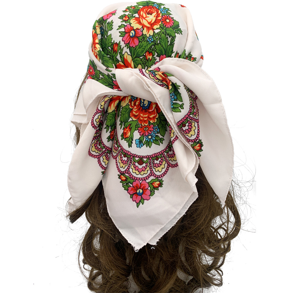 꽃무늬 사각 스카프, 러시안 스타일 터번, 인조 면 스카프, 에스닉 스타일 할머니 방진 및 따뜻한 터번