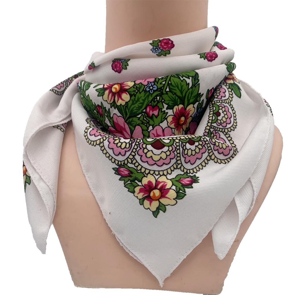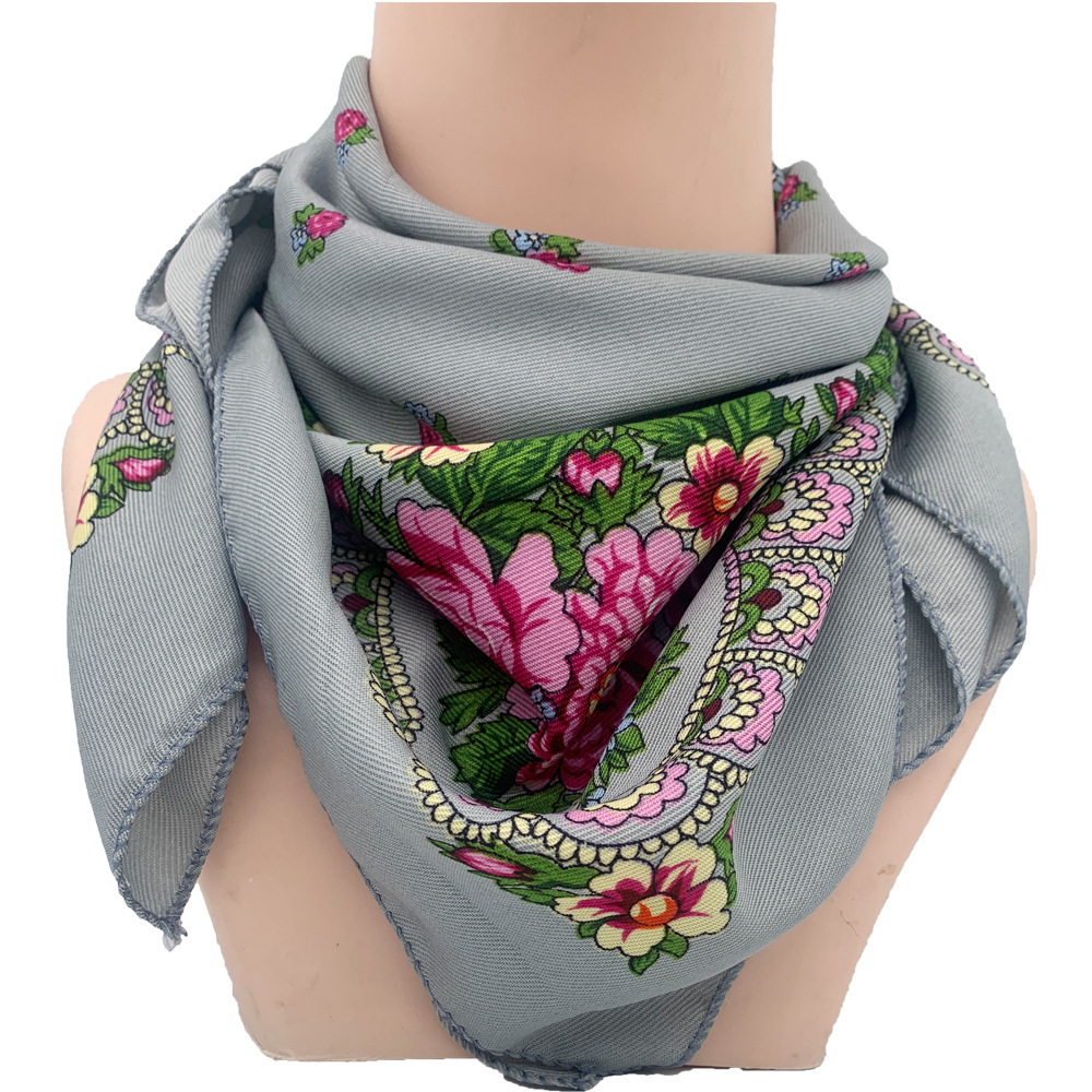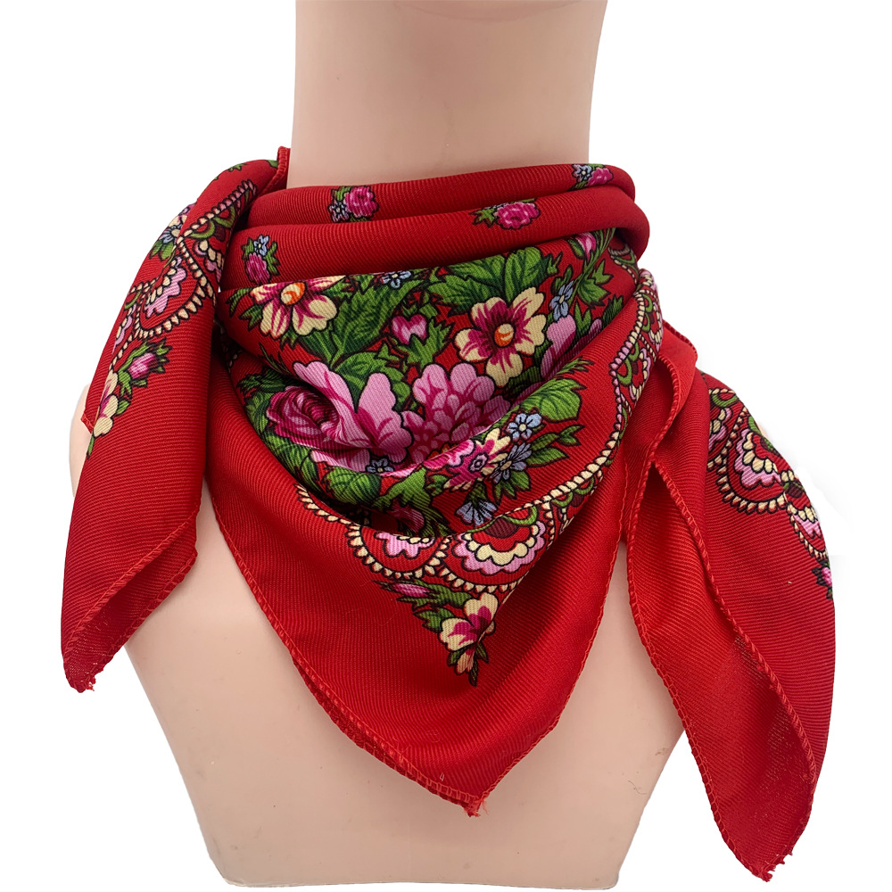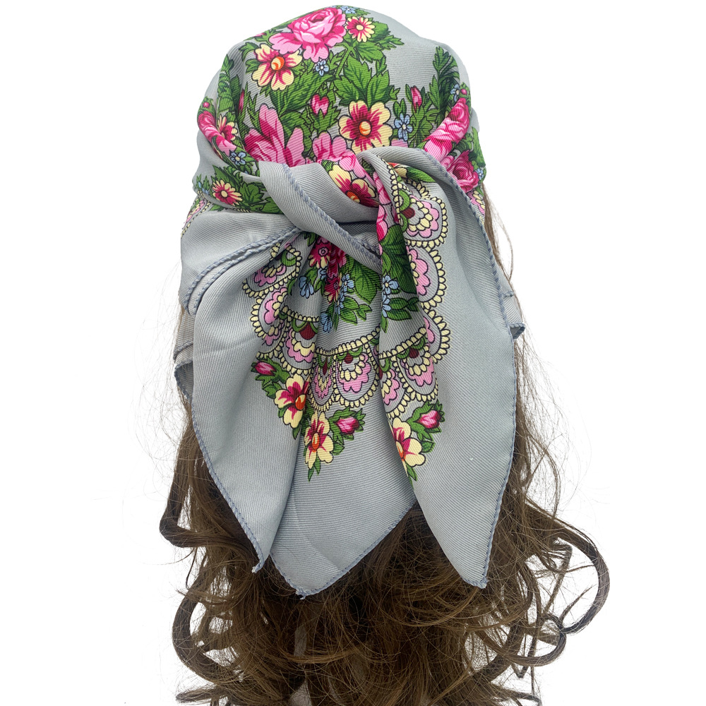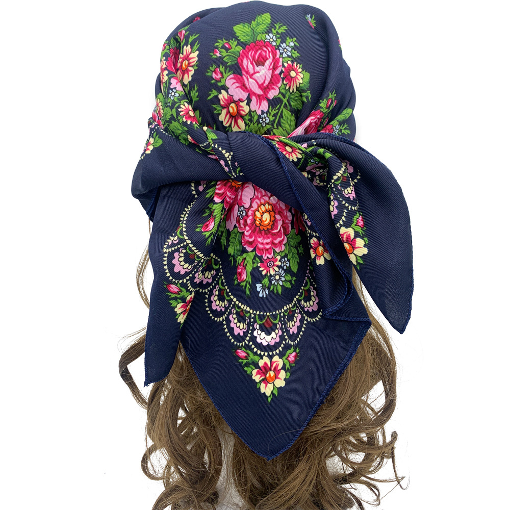 꽃무늬 사각 스카프, 러시안 스타일 터번, 인조 면 스카프, 에스닉 스타일 할머니 방진 및 따뜻한 터번