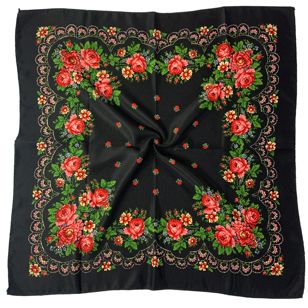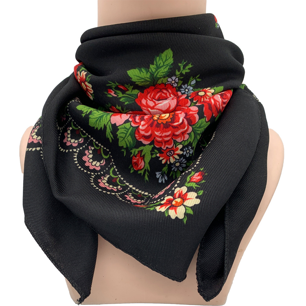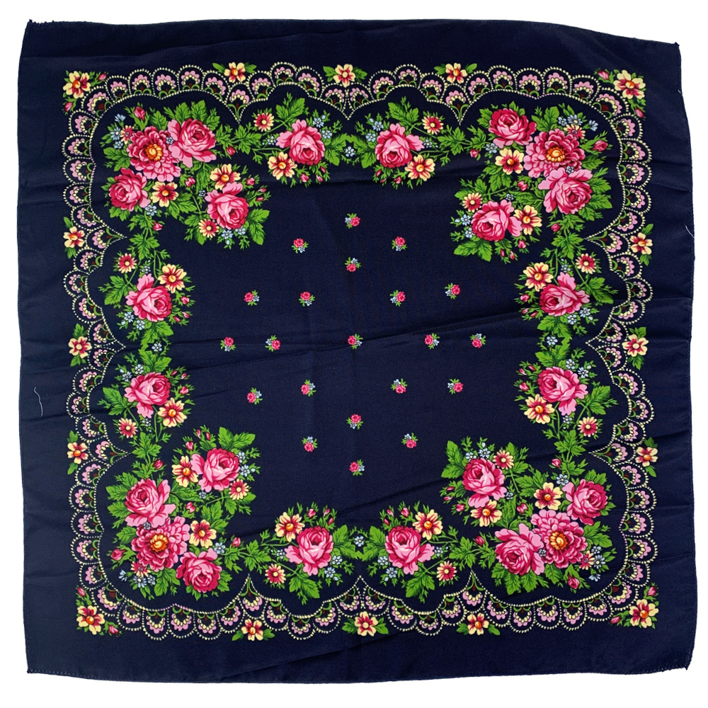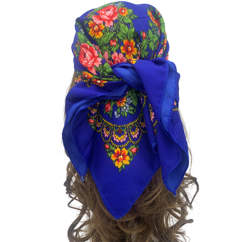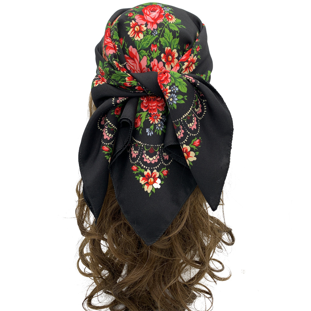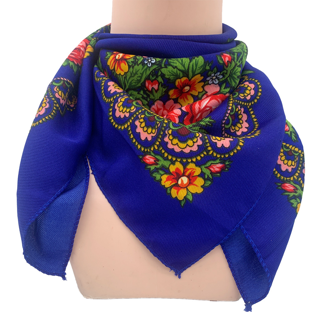 꽃무늬 사각 스카프, 러시안 스타일 터번, 인조 면 스카프, 에스닉 스타일 할머니 방진 및 따뜻한 터번
