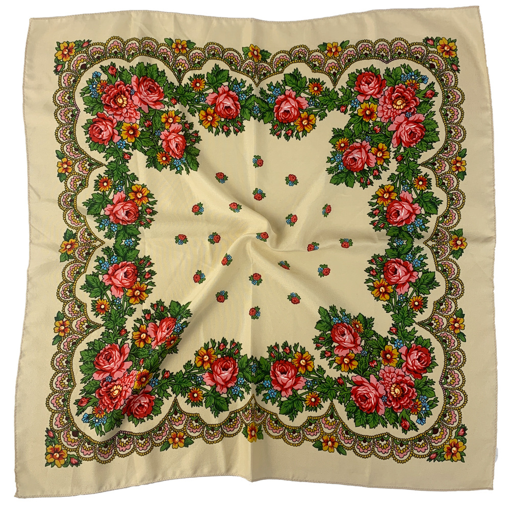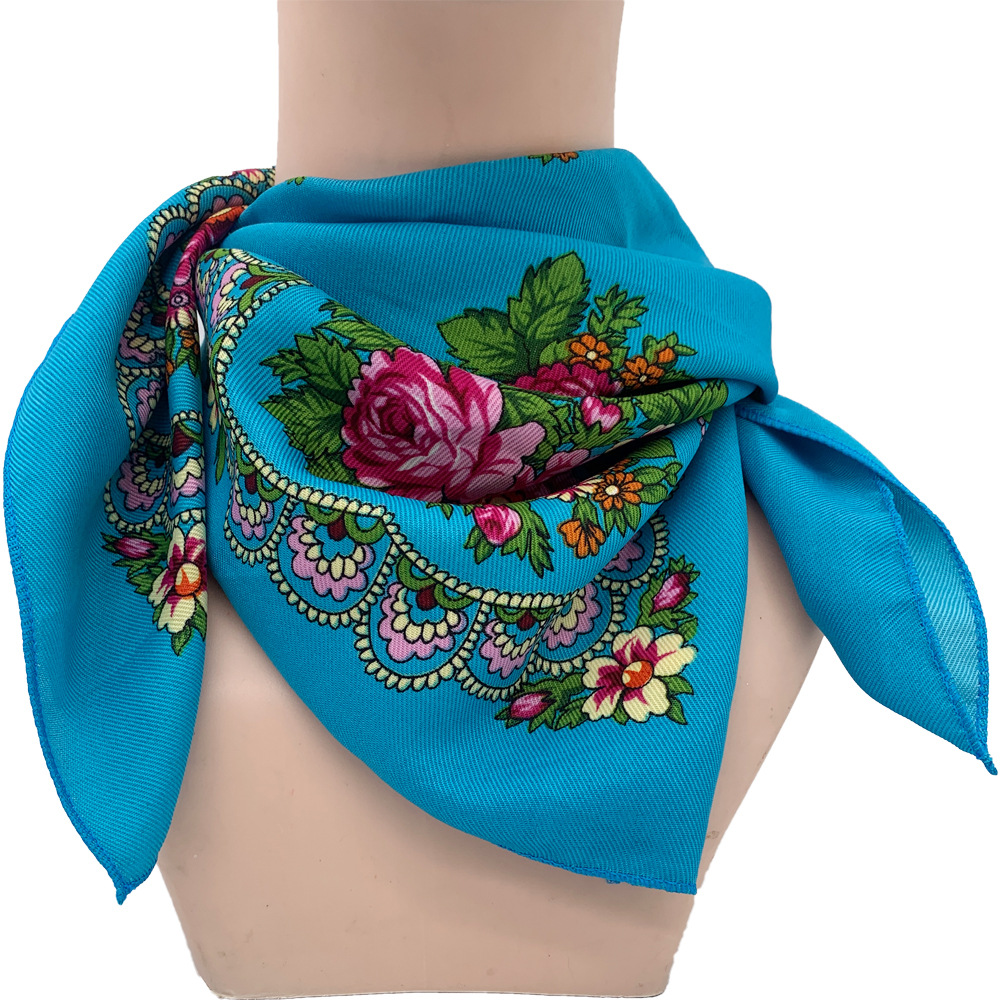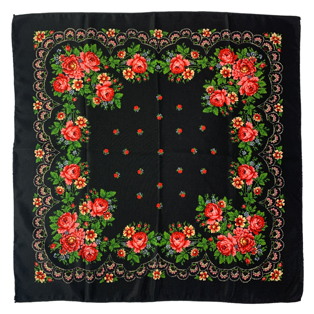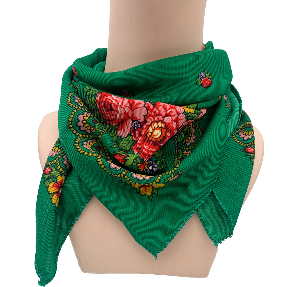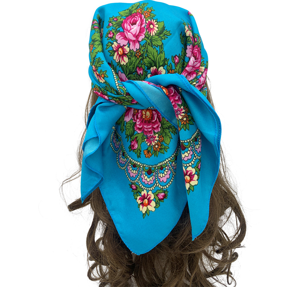 꽃무늬 사각 스카프, 러시안 스타일 터번, 인조 면 스카프, 에스닉 스타일 할머니 방진 및 따뜻한 터번