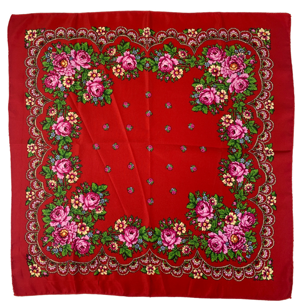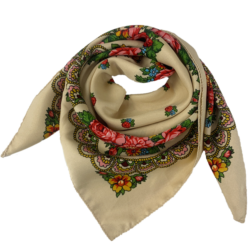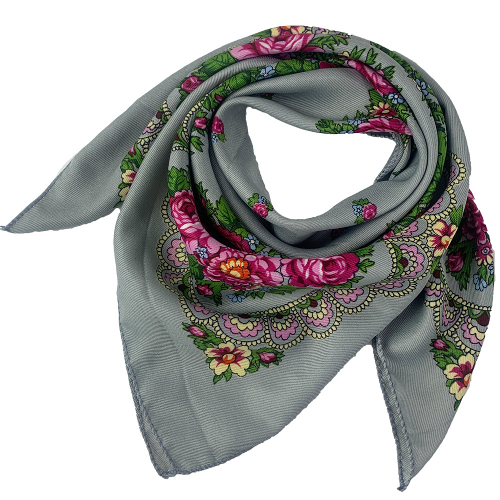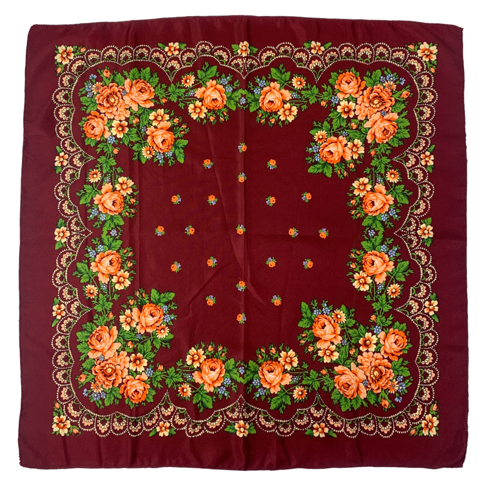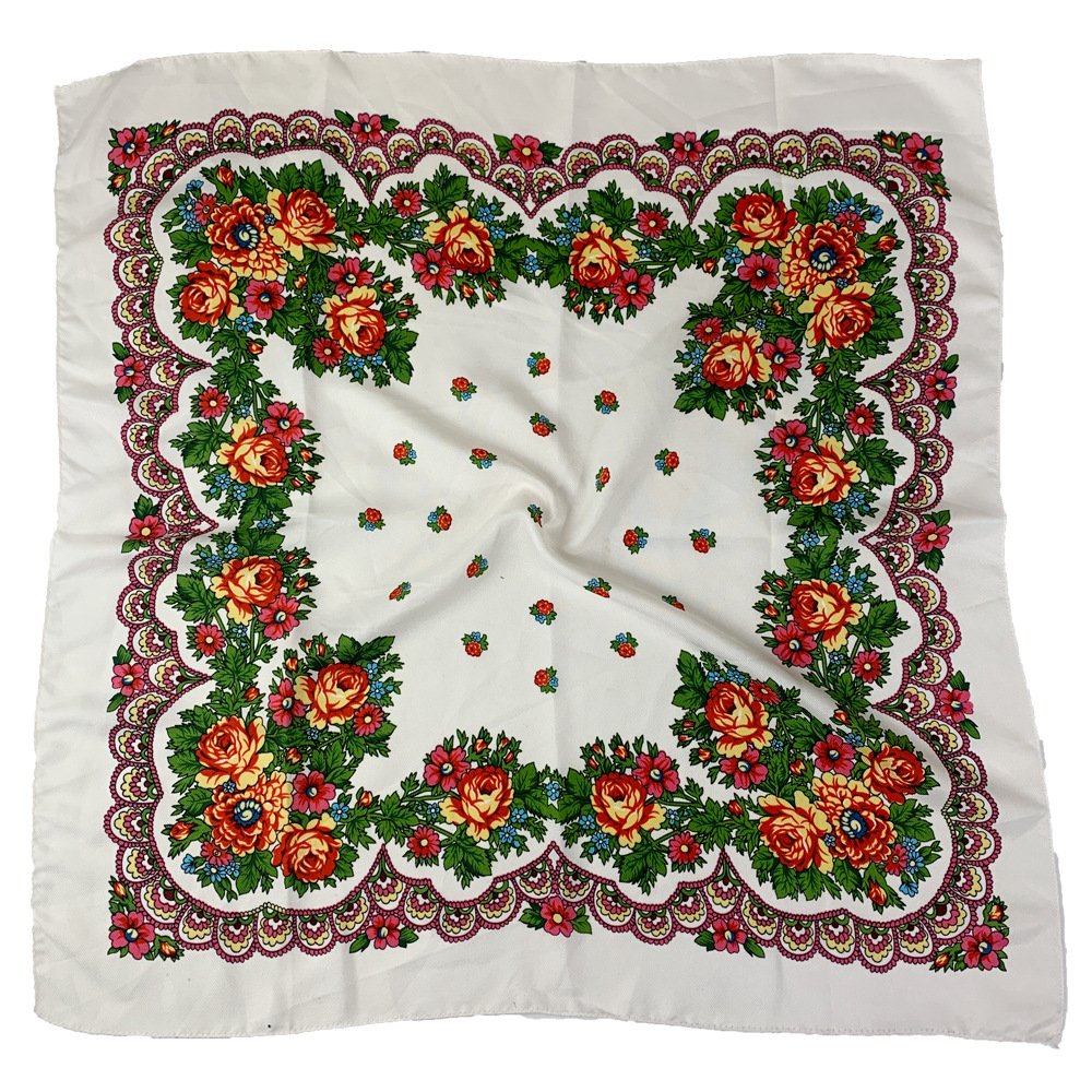 꽃무늬 사각 스카프, 러시안 스타일 터번, 인조 면 스카프, 에스닉 스타일 할머니 방진 및 따뜻한 터번