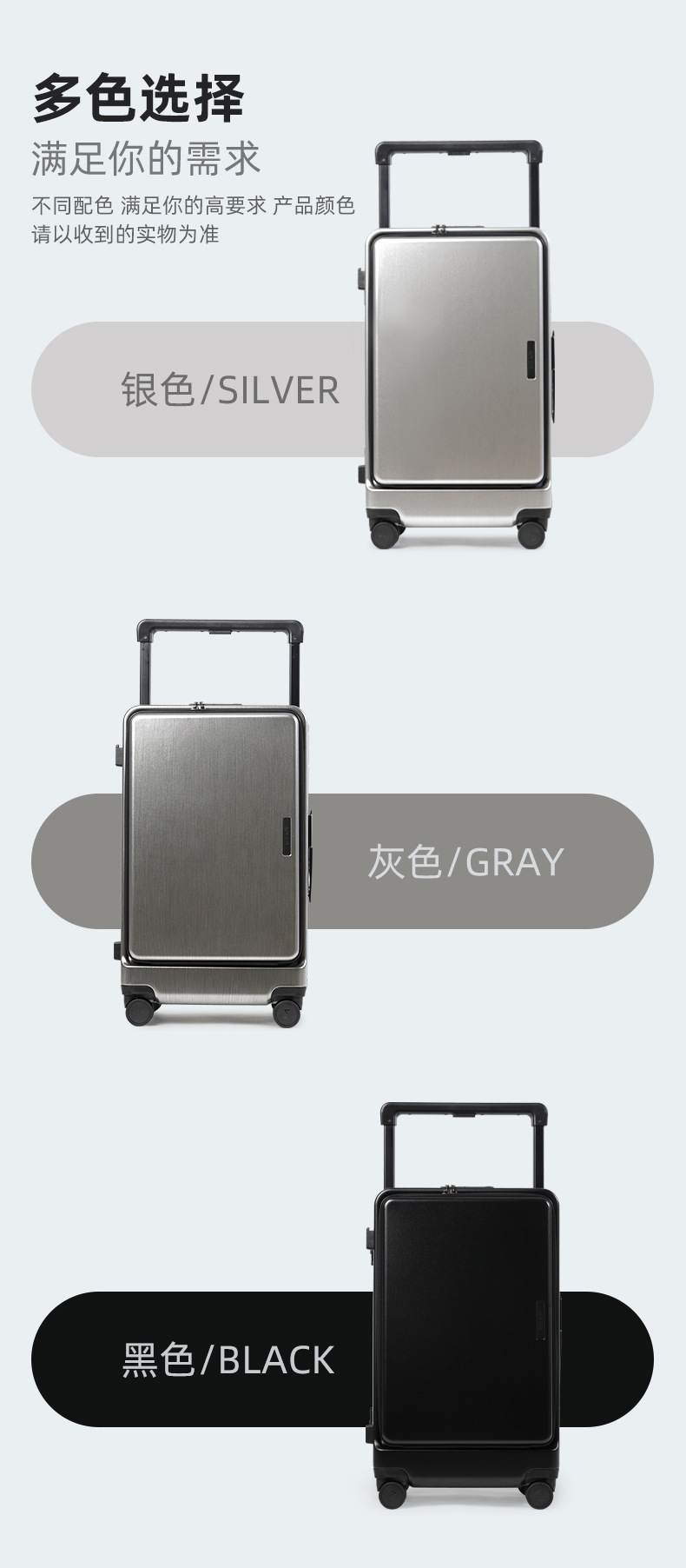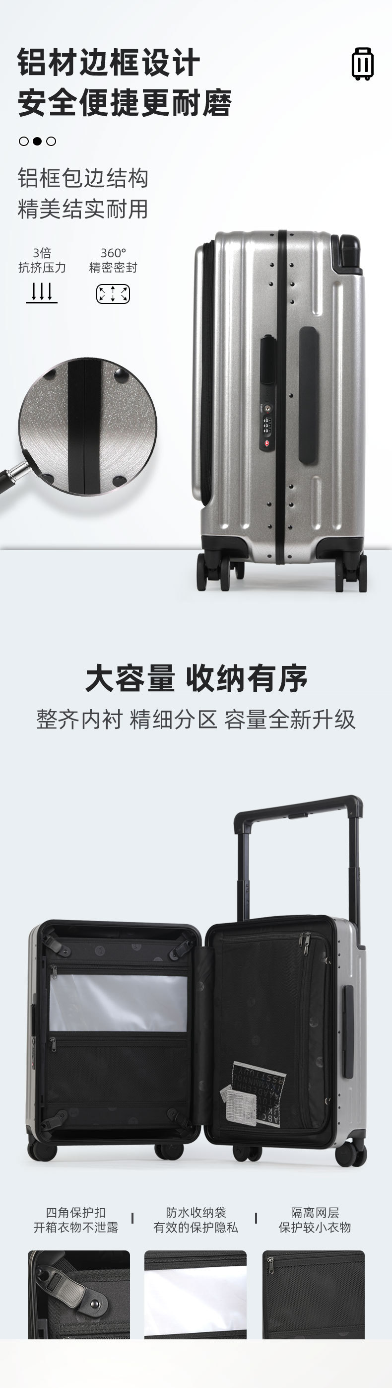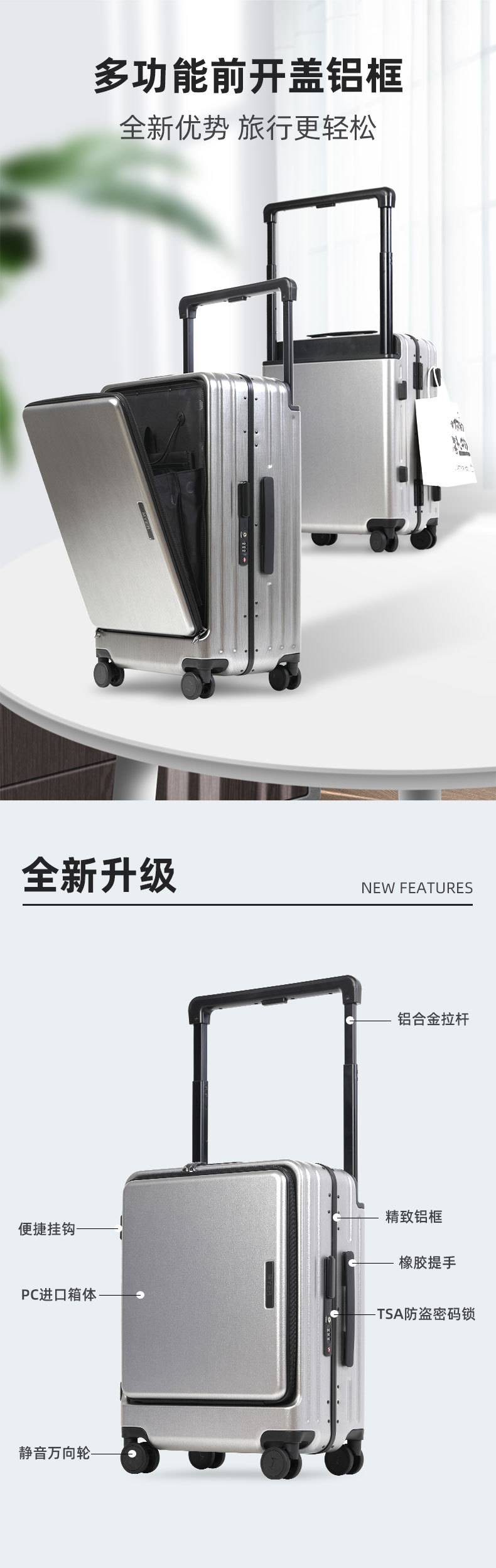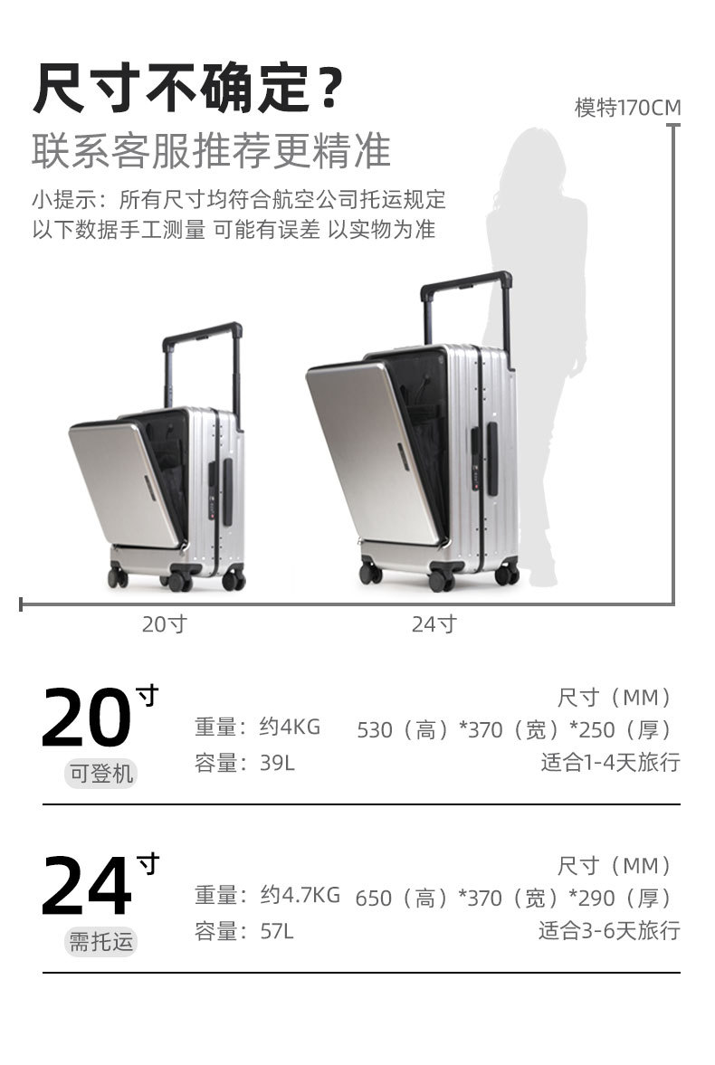 20 인치 다기능 전면 개방 비즈니스 여행 탑승 상자 남녀 여행 가방 24 인치 알루미늄 프레임 넓은 트롤리 케이스
