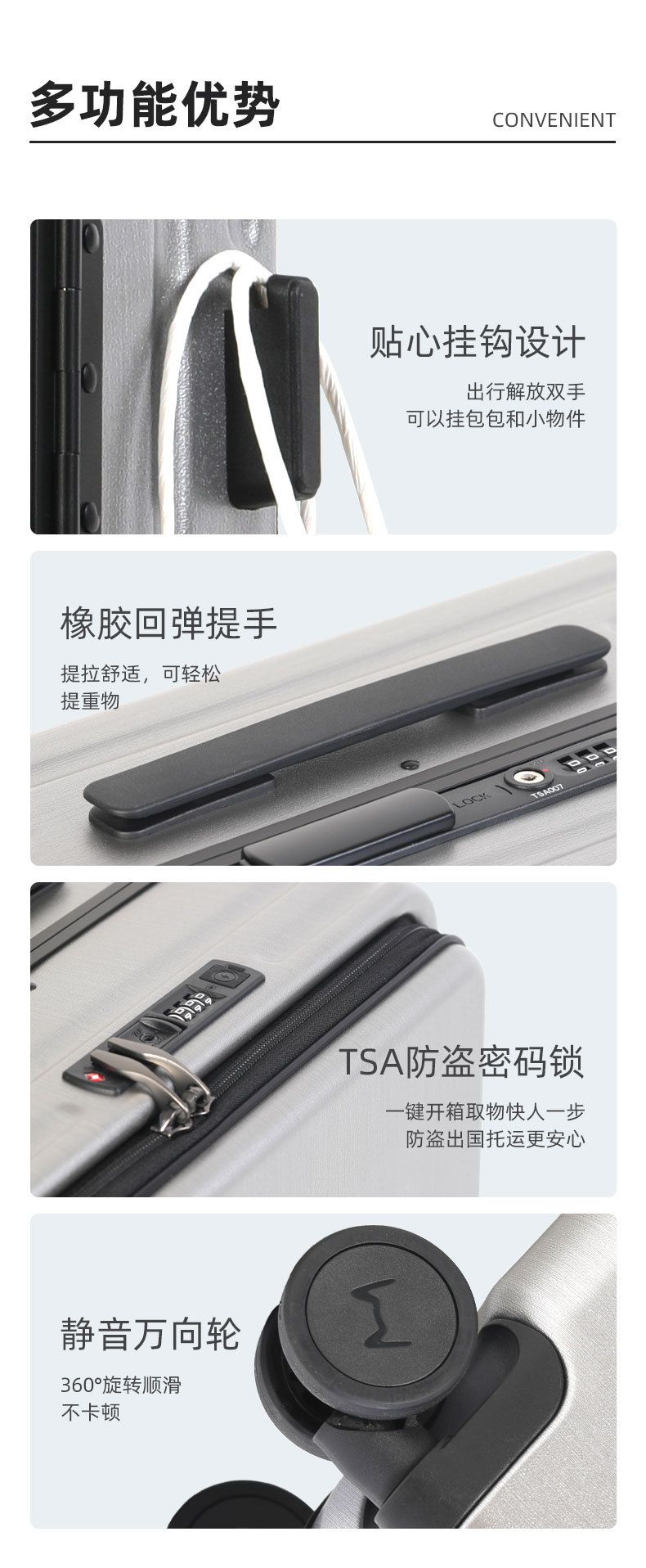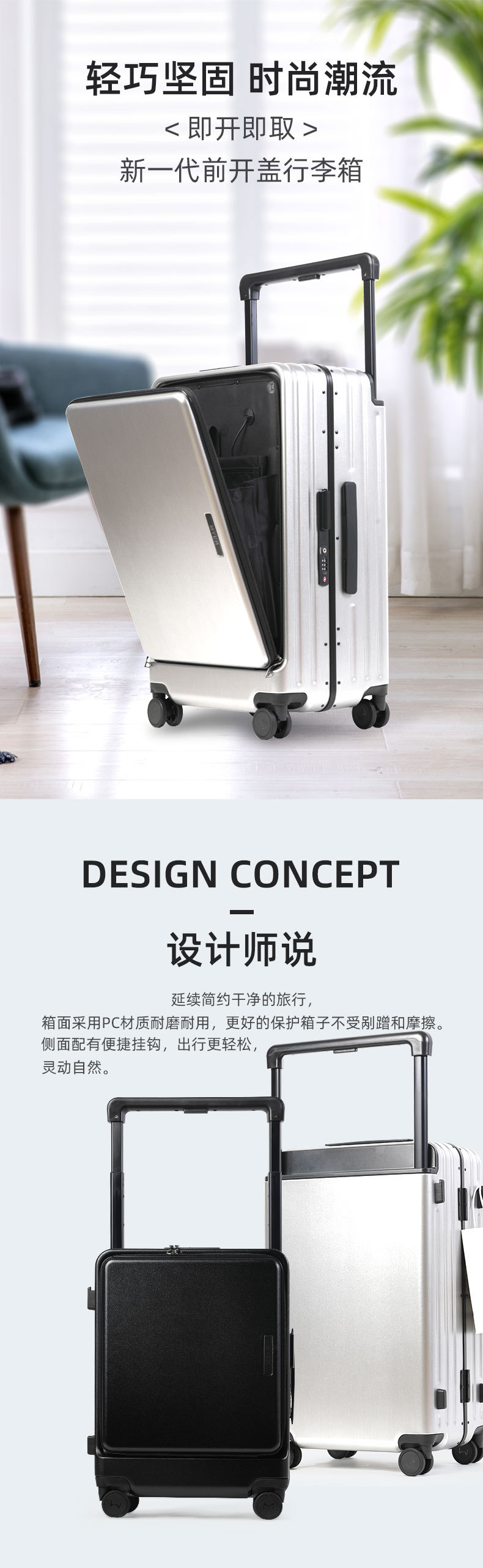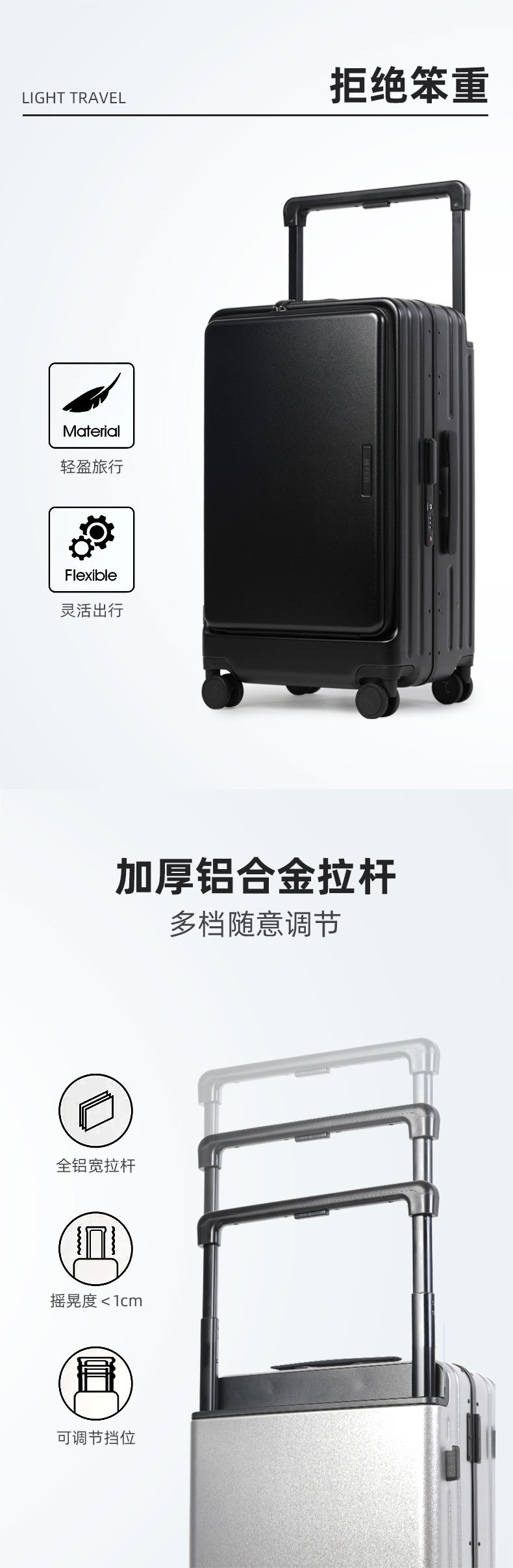 20 인치 다기능 전면 개방 비즈니스 여행 탑승 상자 남녀 여행 가방 24 인치 알루미늄 프레임 넓은 트롤리 케이스
