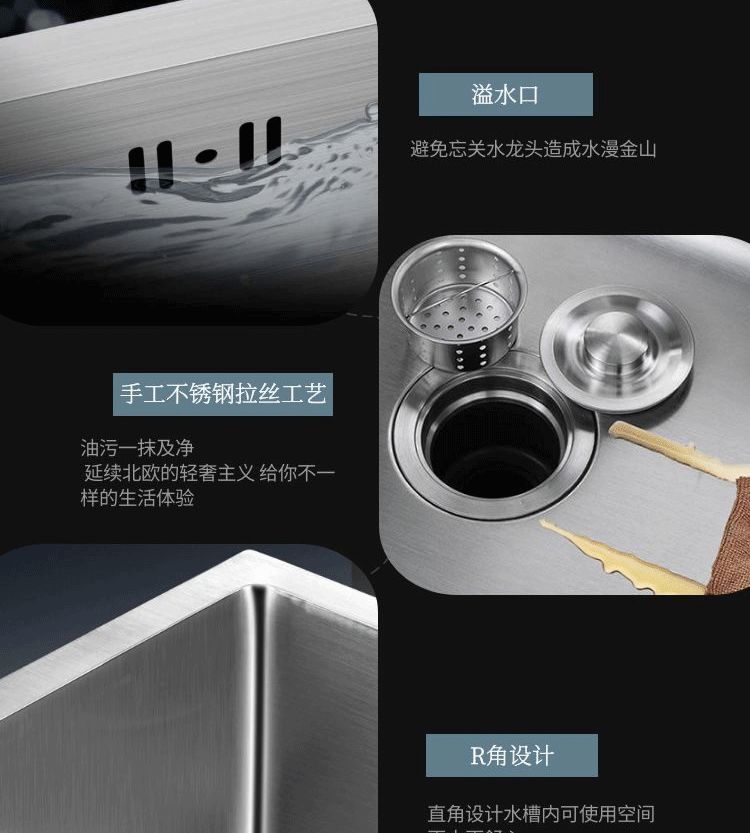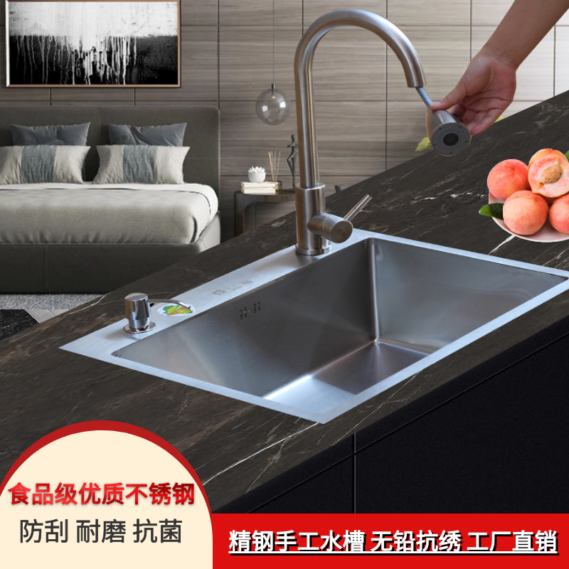 두꺼운 3.0 단일 싱크 주방 싱크대 야채 세척 분지 3 홀 대형 단일 싱크 304 수제 스테인레스 스틸 싱크 세척 변경스토어 가기