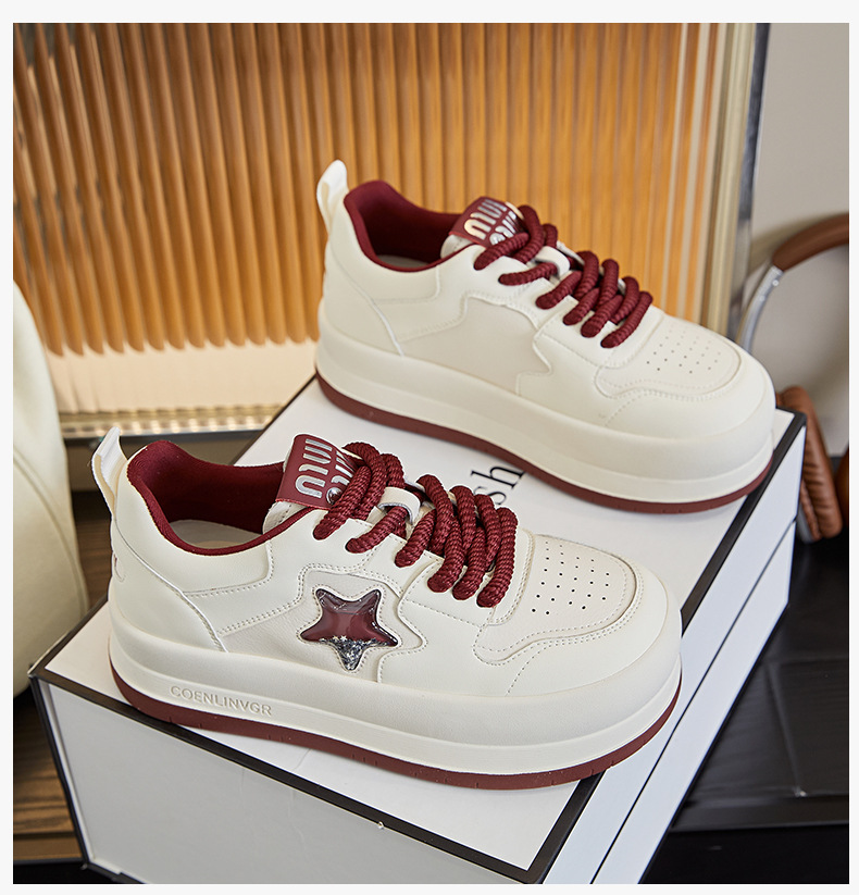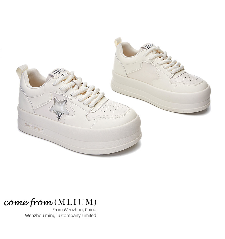 여성용 천연 가죽 스타 스니커즈 2025 봄 신상 두꺼운 밑창 다용도 화이트 슈즈 트렌디 캐주얼 슈즈 여성용 편안한 단화