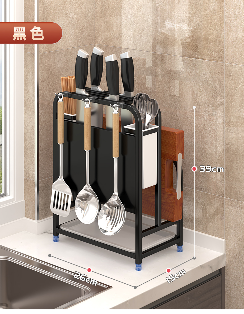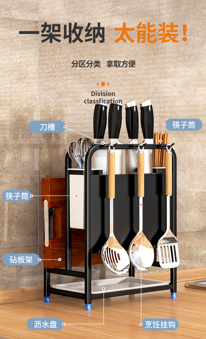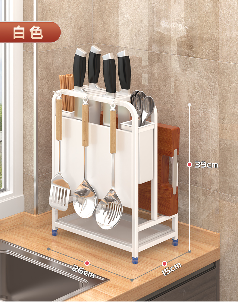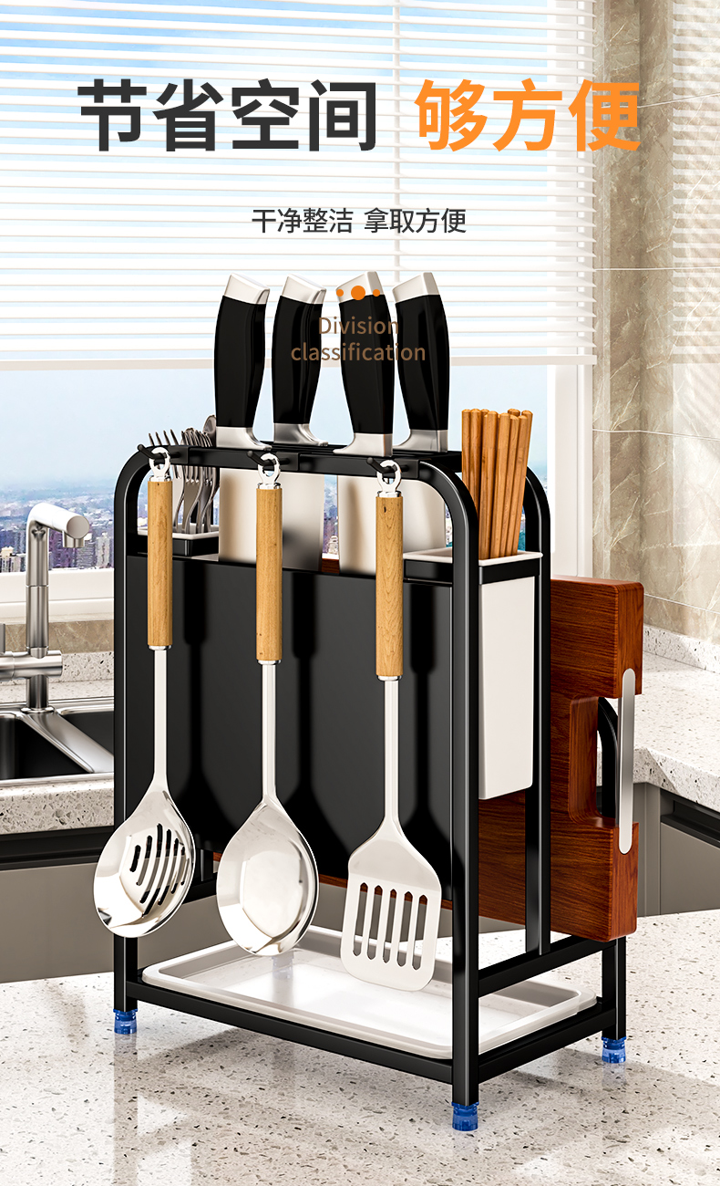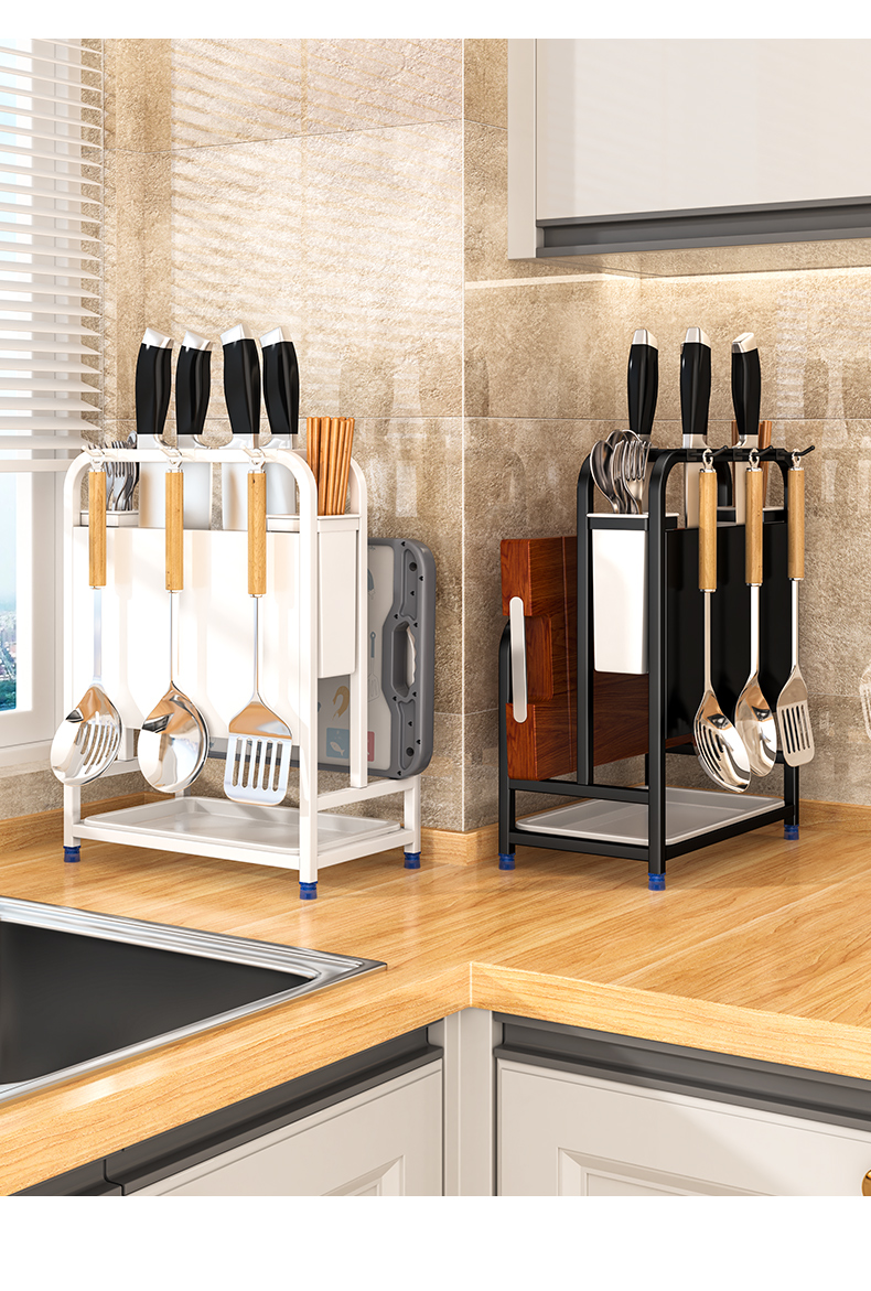 주방칼걸이, 칼홀더, 젓가락케이지, 수납선반, 조리대, 도마, 칼, 배수구, 다기능 일체형 수납장