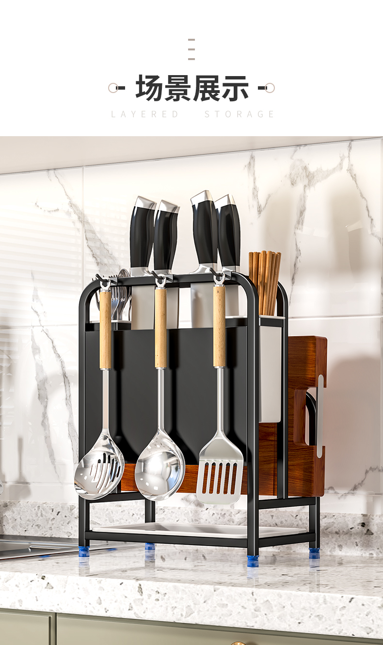 주방칼걸이, 칼홀더, 젓가락케이지, 수납선반, 조리대, 도마, 칼, 배수구, 다기능 일체형 수납장스토어 가기