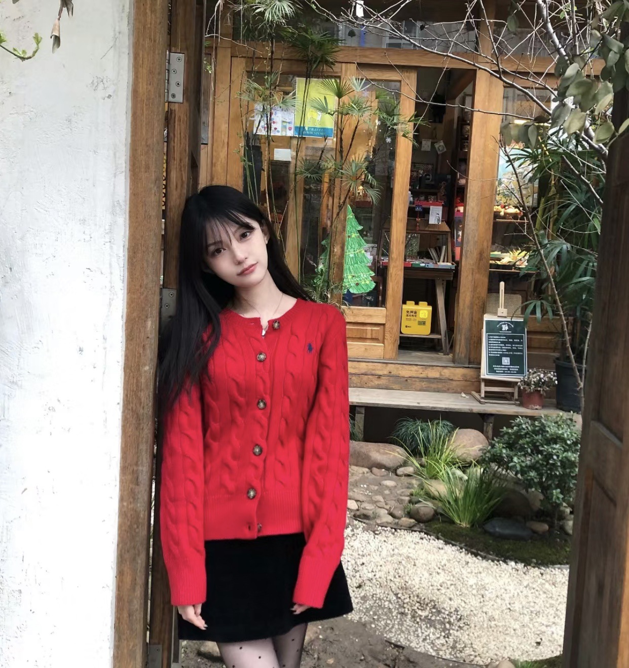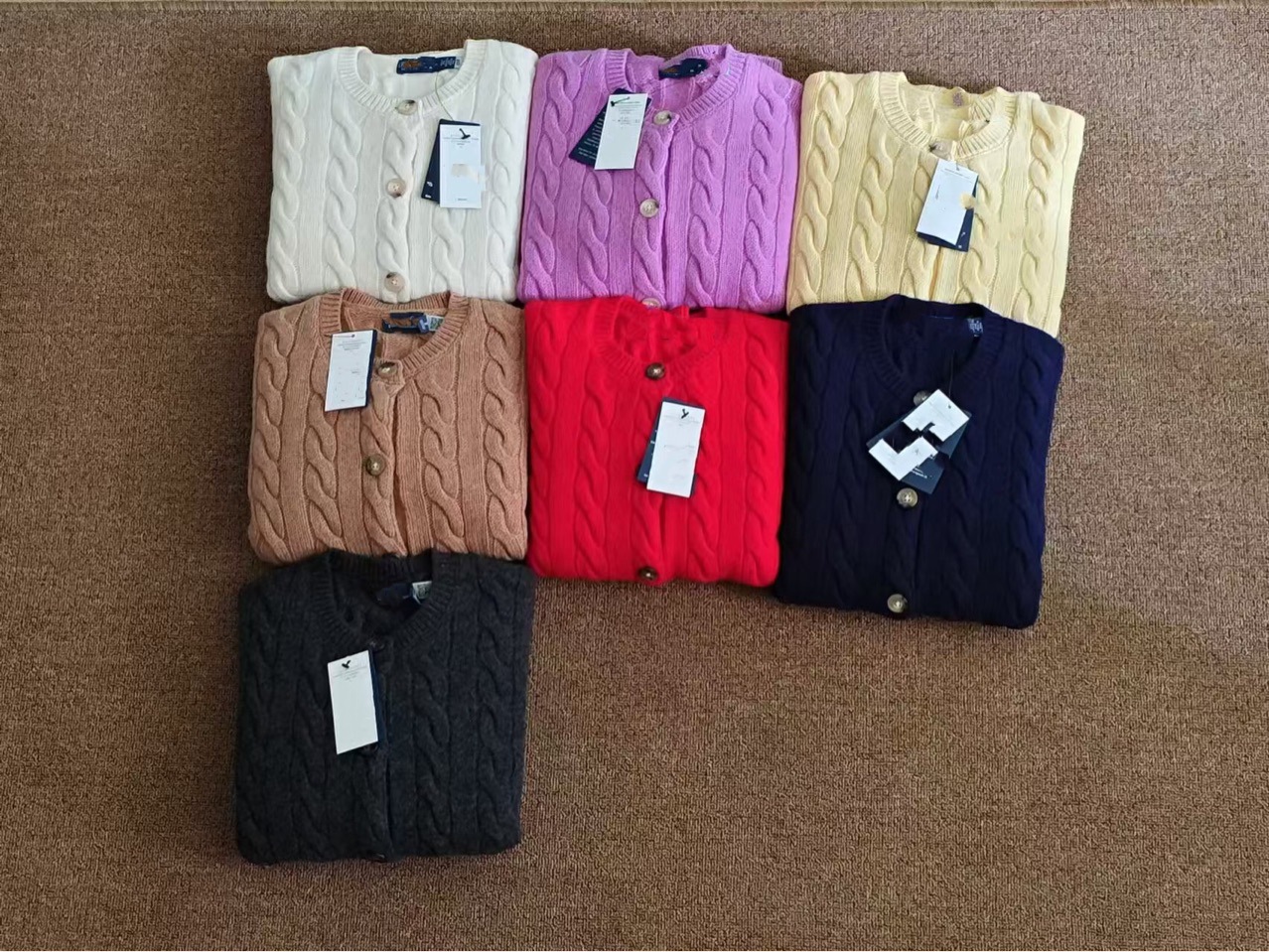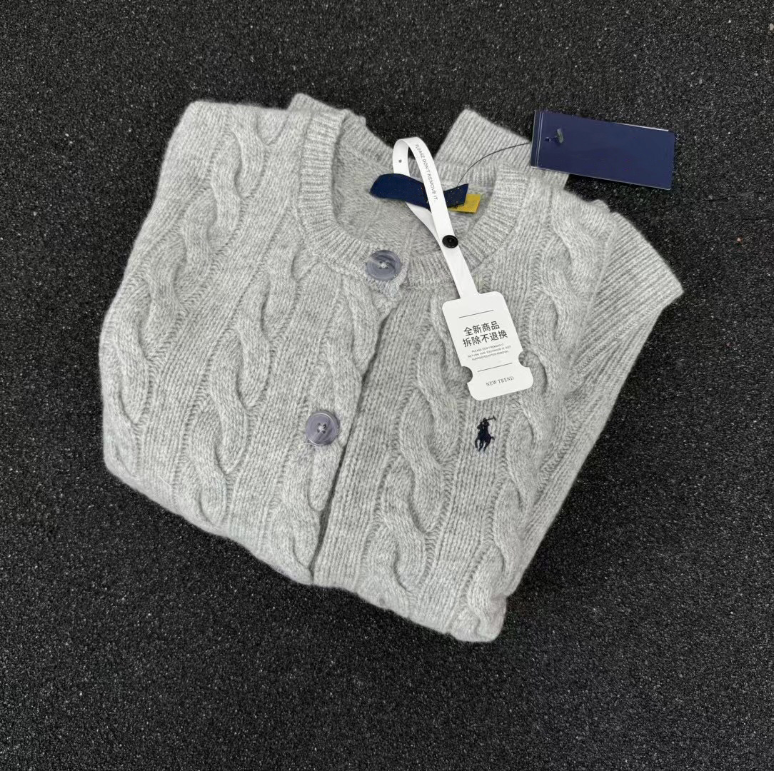 RL[80% 양모 20% 캐시미어] 러프 포니 자수 새 캐시미어 카디건 스윕 천장스토어 가기