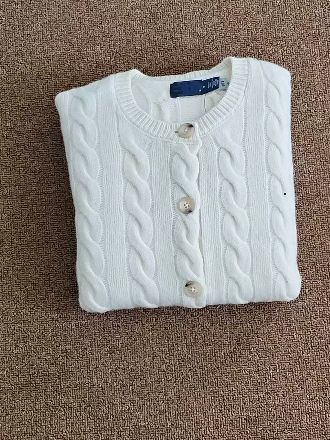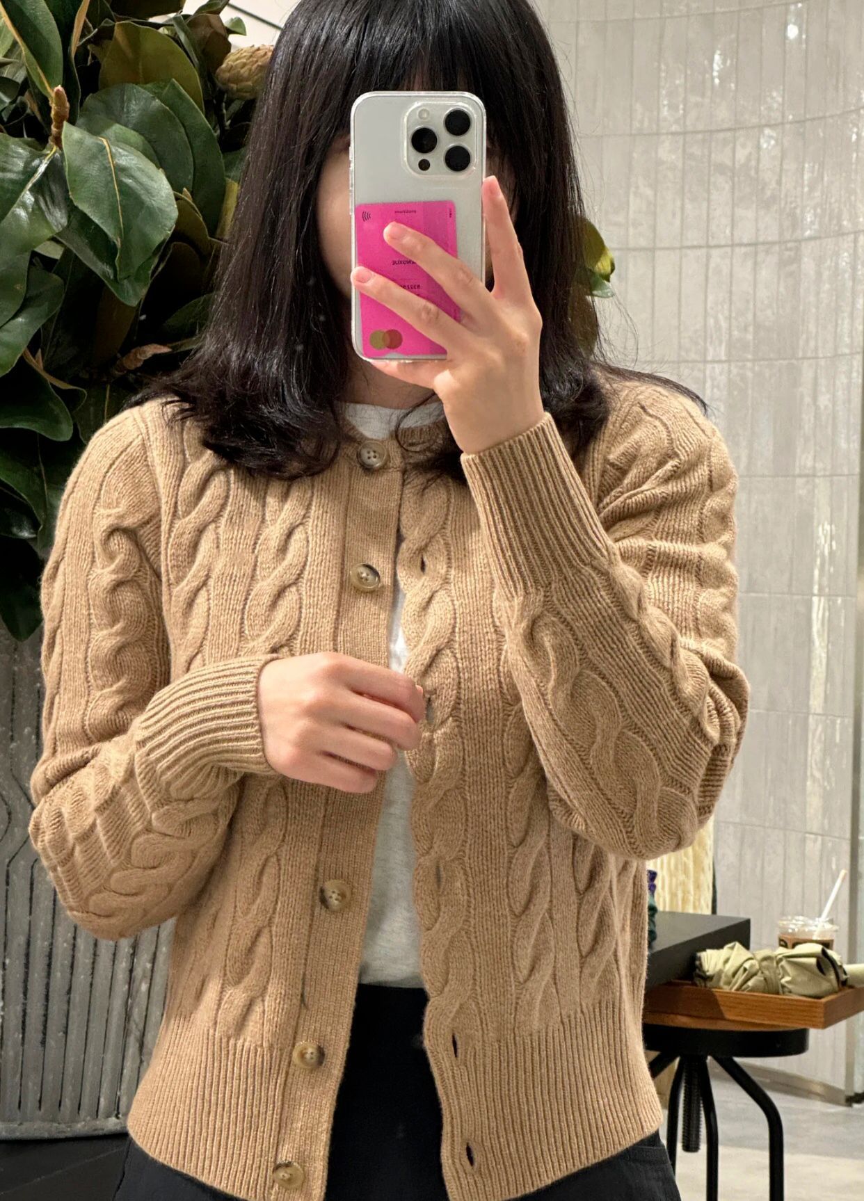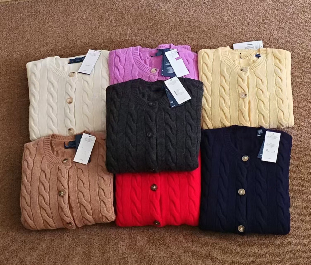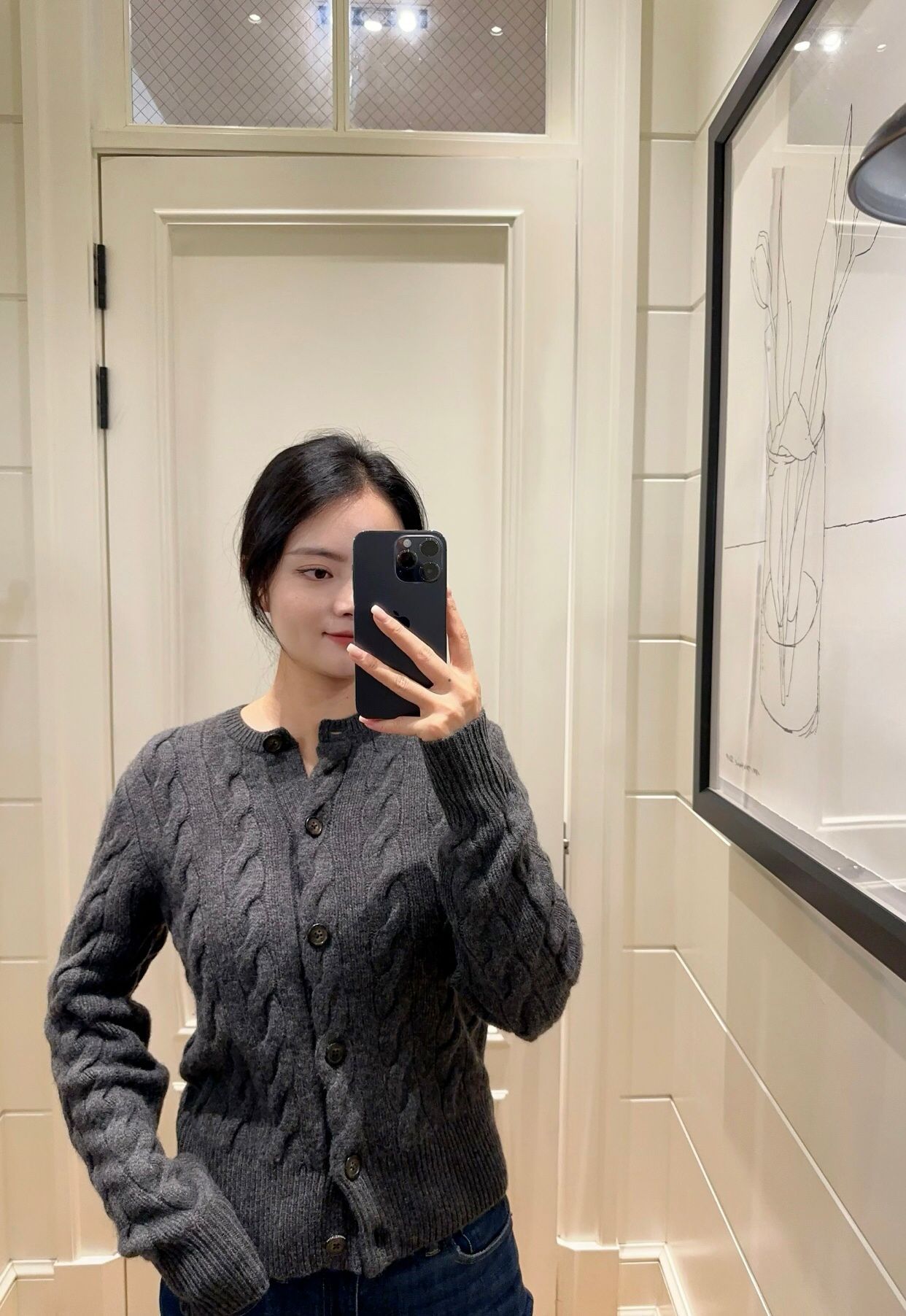 RL[80% 양모 20% 캐시미어] 러프 포니 자수 새 캐시미어 카디건 스윕 천장