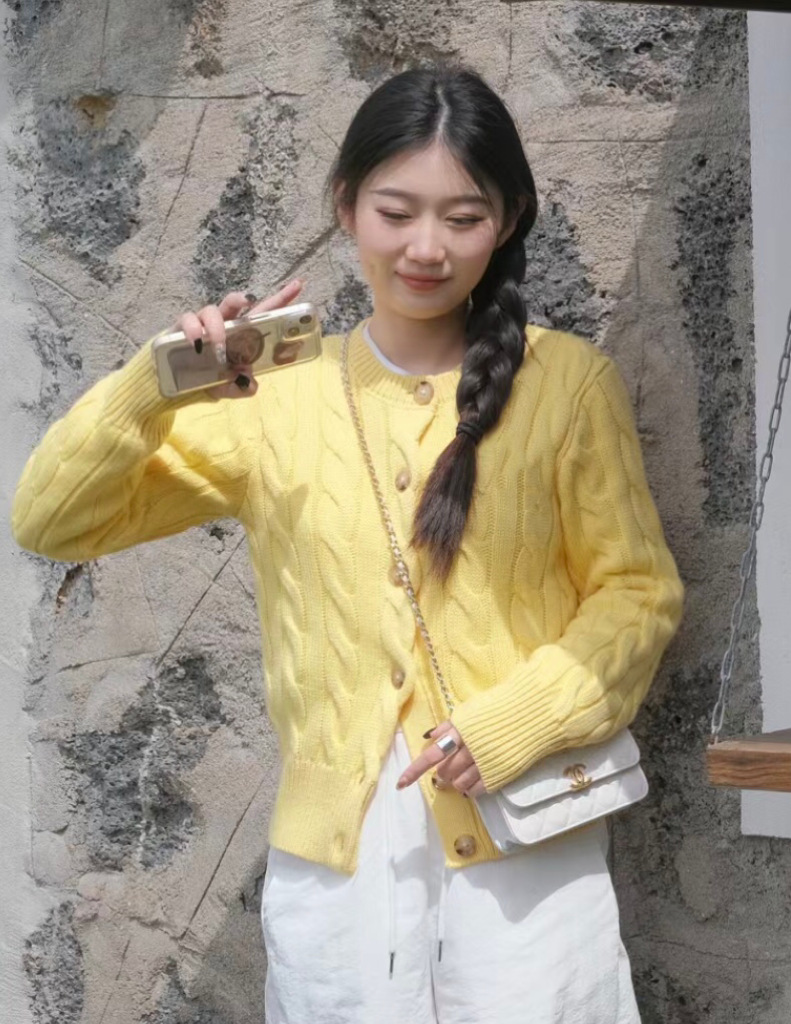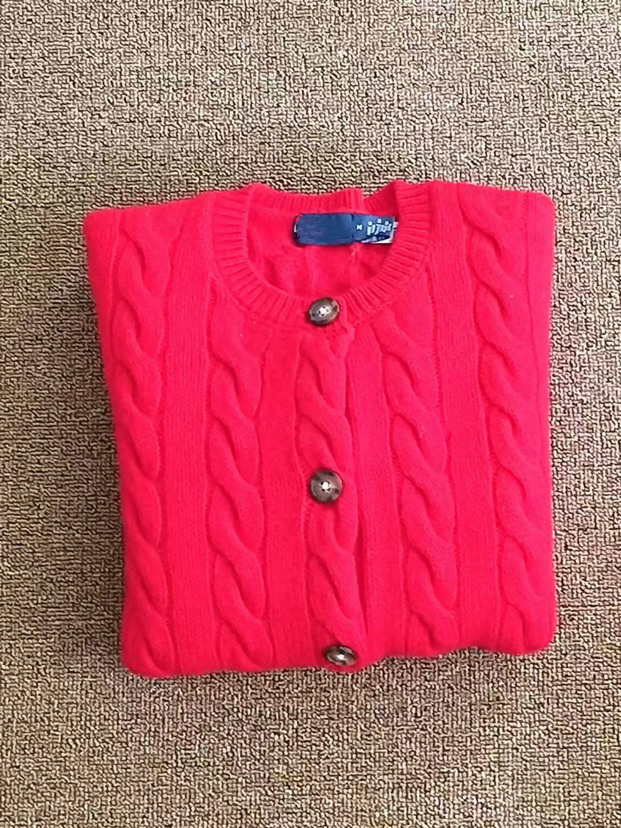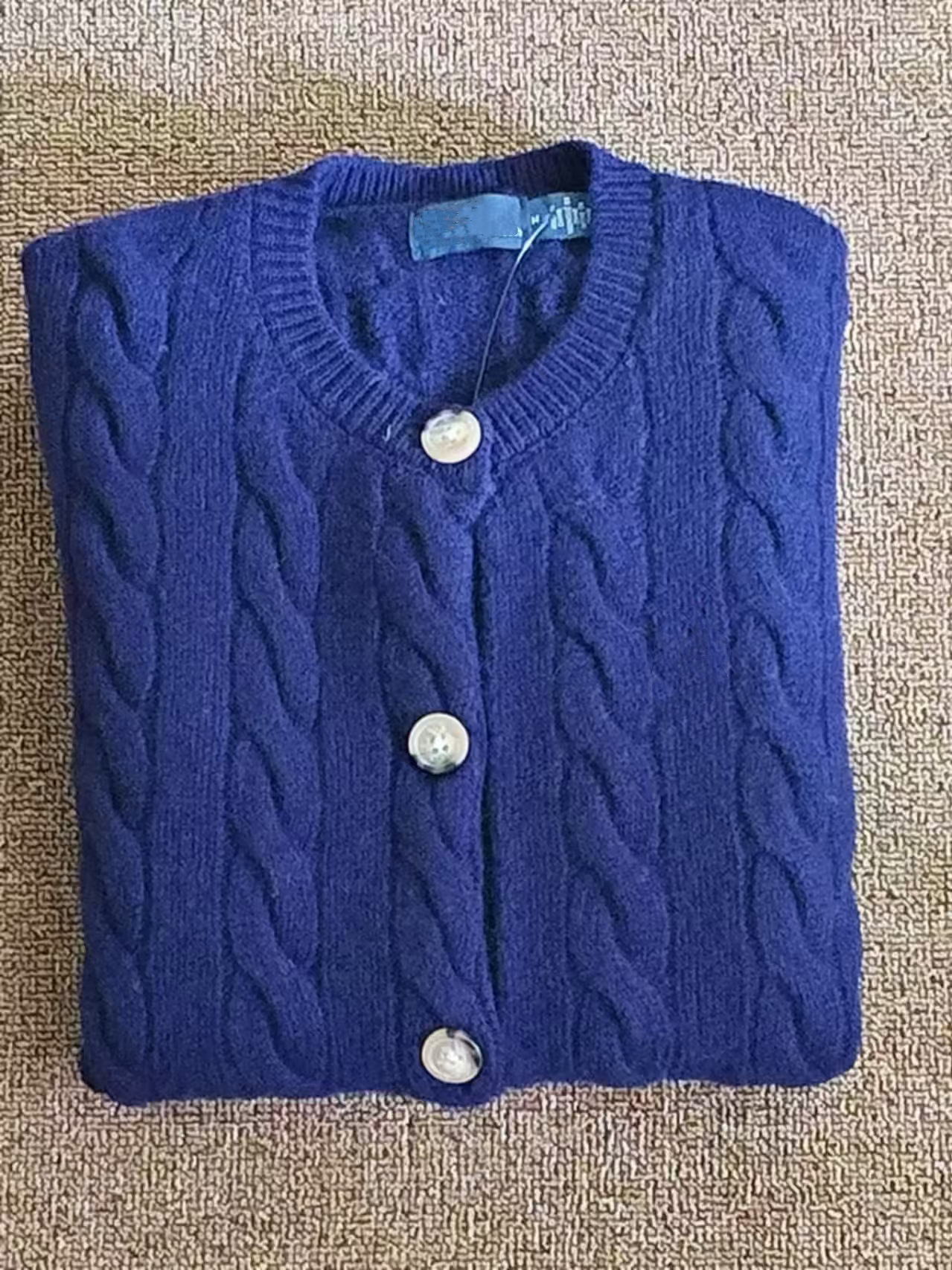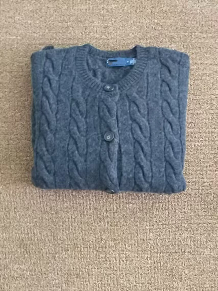 RL[80% 양모 20% 캐시미어] 러프 포니 자수 새 캐시미어 카디건 스윕 천장