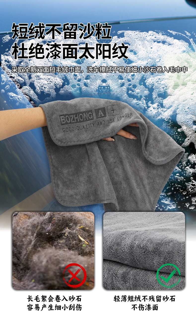 초극세사 양면 짧은 털 세차 타월, 자동차 닦는 천, 물을 흡수하고 보풀이 생기지 않는 두꺼운 자동차 청소용 타월