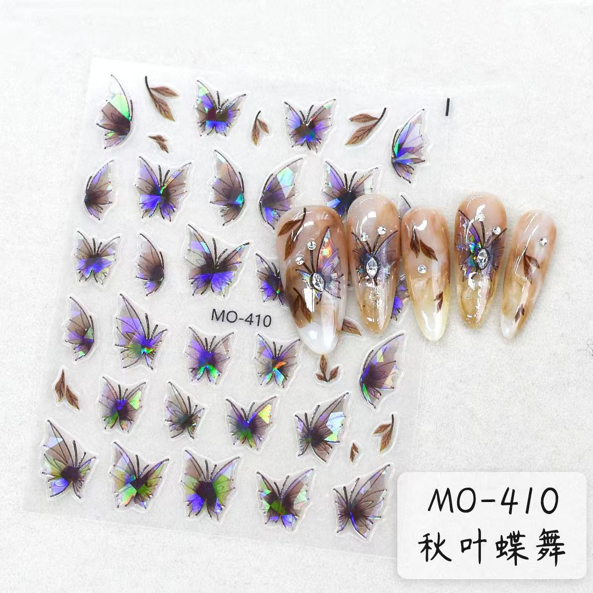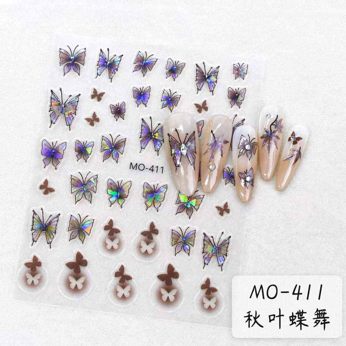 인터넷 축하 새로운 가을과 겨울 마일라드 나비 쉘 라이트 네일 아트 스티커 중국 레트로 다크 브라운 죽은 잎 네일 장식