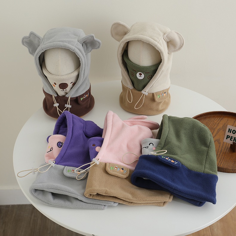 2024 어린이 모자 스카프 마스크 통합 캡 겨울 아기 패딩 따뜻한 방풍 귀 보호 캡 2443-43