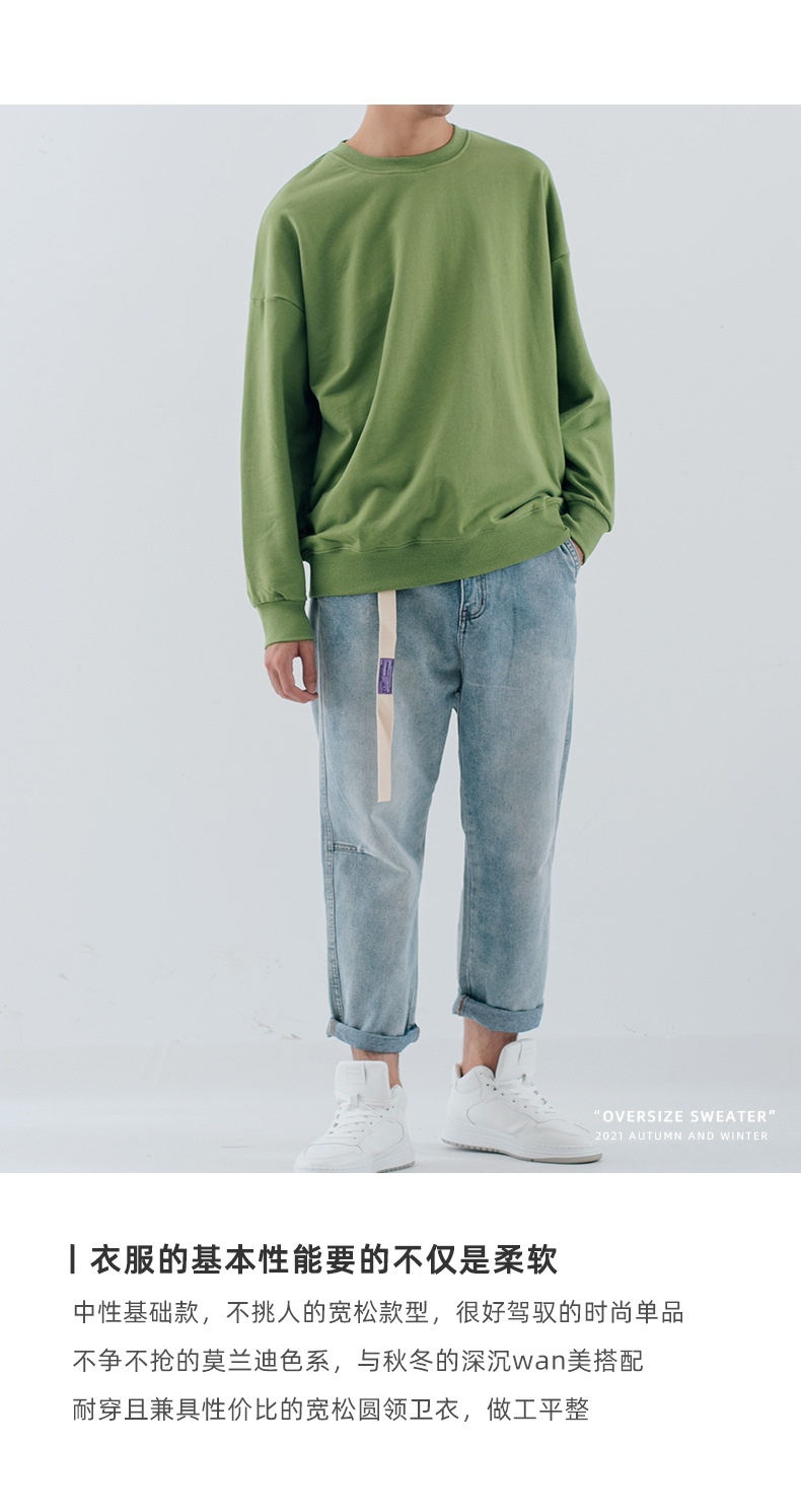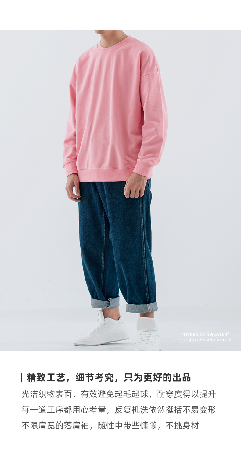 320g 남자 크루 넥 스웨터 루즈 숄더 인 패션 브랜드 가을/겨울 긴 소매 두꺼운 티셔츠 캐주얼 솔리드 컬러베이스 셔츠스토어 가기
