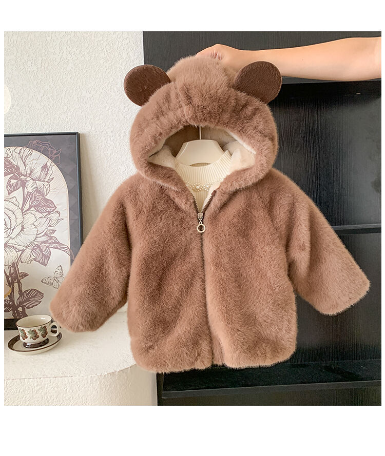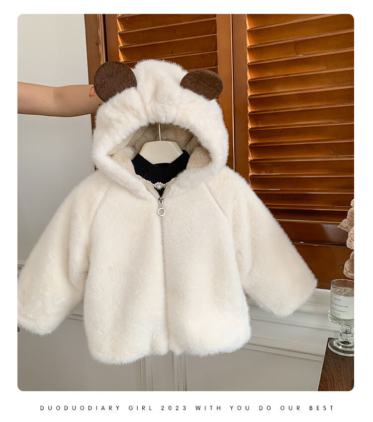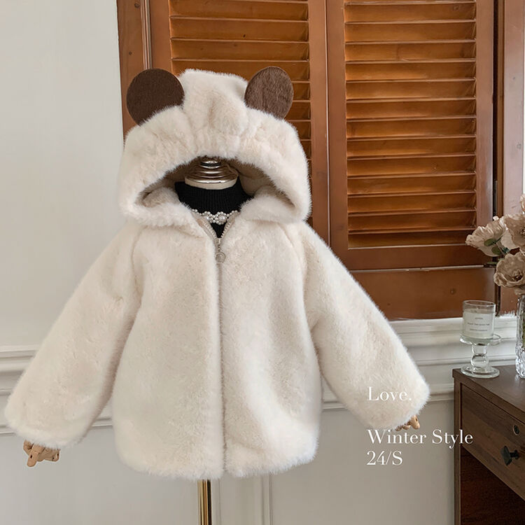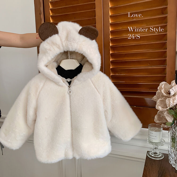 여자 가을과 겨울 새로운 모피 코트 두꺼운 기모 후드 토끼 귀 아기 따뜻한 외국 스타일 패션 코트스토어 가기