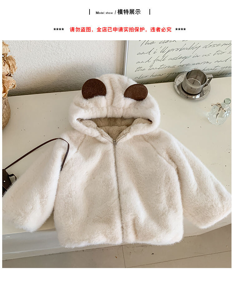 여자 가을과 겨울 새로운 모피 코트 두꺼운 기모 후드 토끼 귀 아기 따뜻한 외국 스타일 패션 코트
