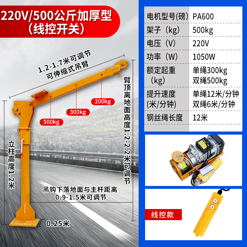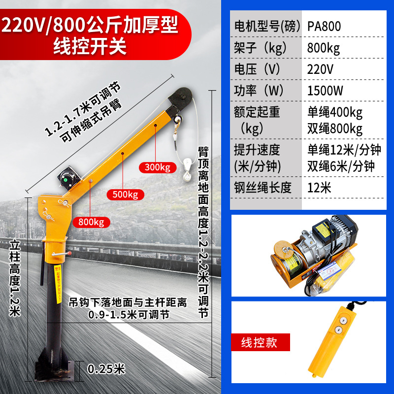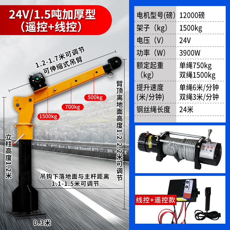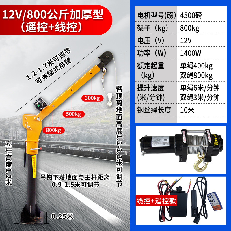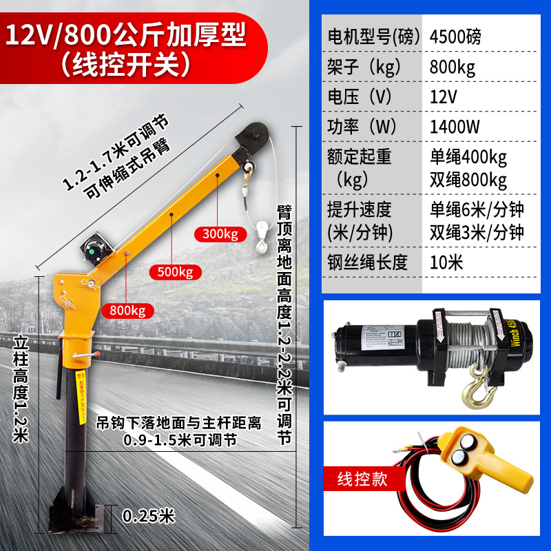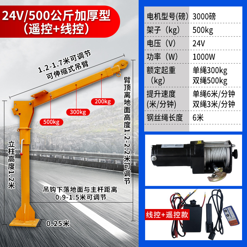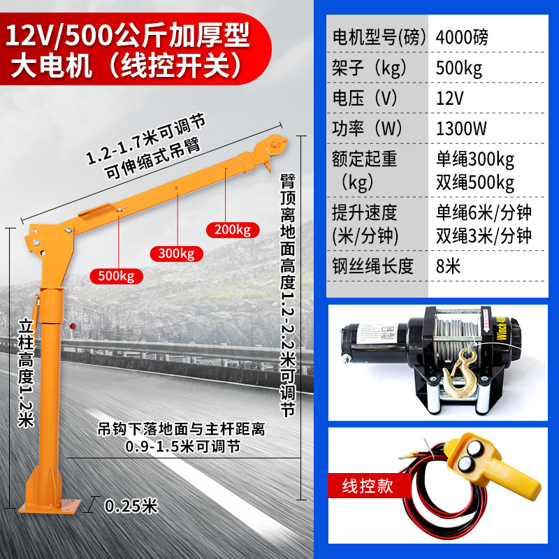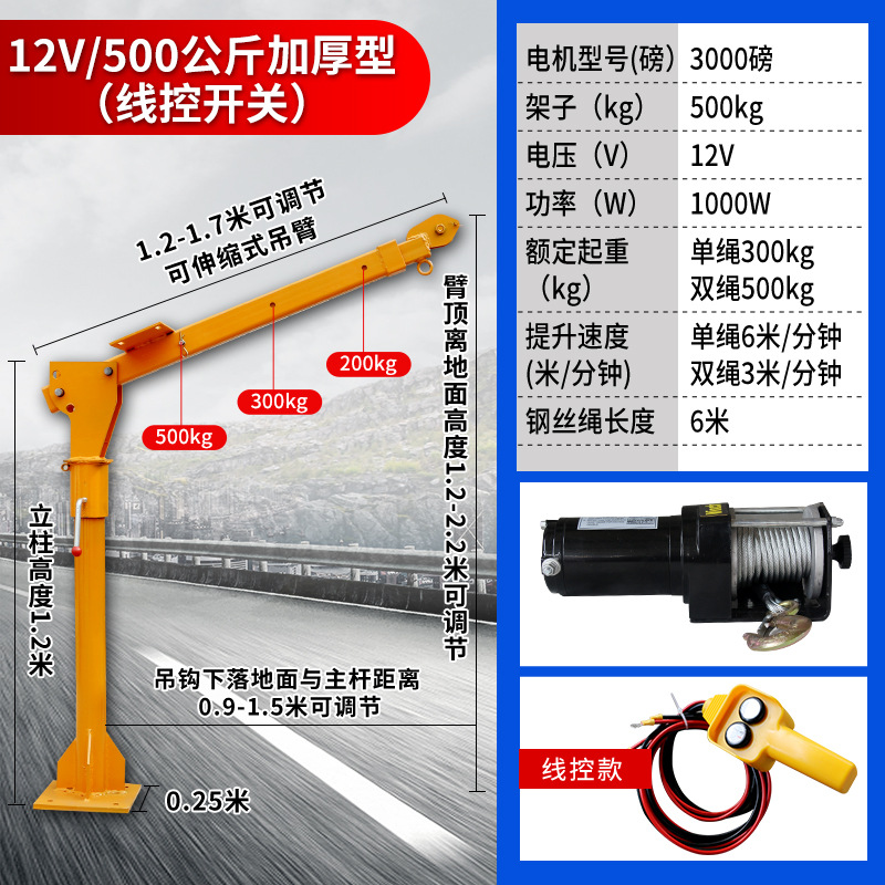 차량 장착 크레인 트럭 장착 크레인 12V24V 소형 캔틸레버 크레인 220V 가정용 전기 호이스트