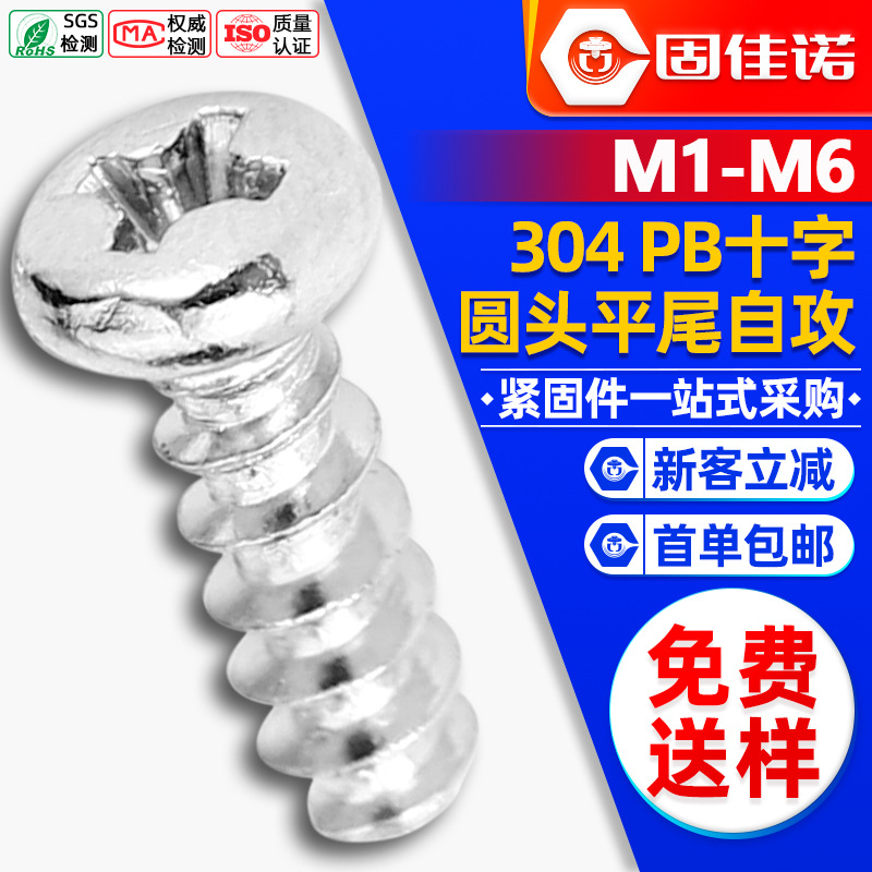 304 스테인레스 스틸 PB 스크류 라운드 헤드 플랫 테일 셀프 태핑 스크류 크로스 팬 헤드 플랫 테일 스크류 M3/M4/M5/M6스토어 가기