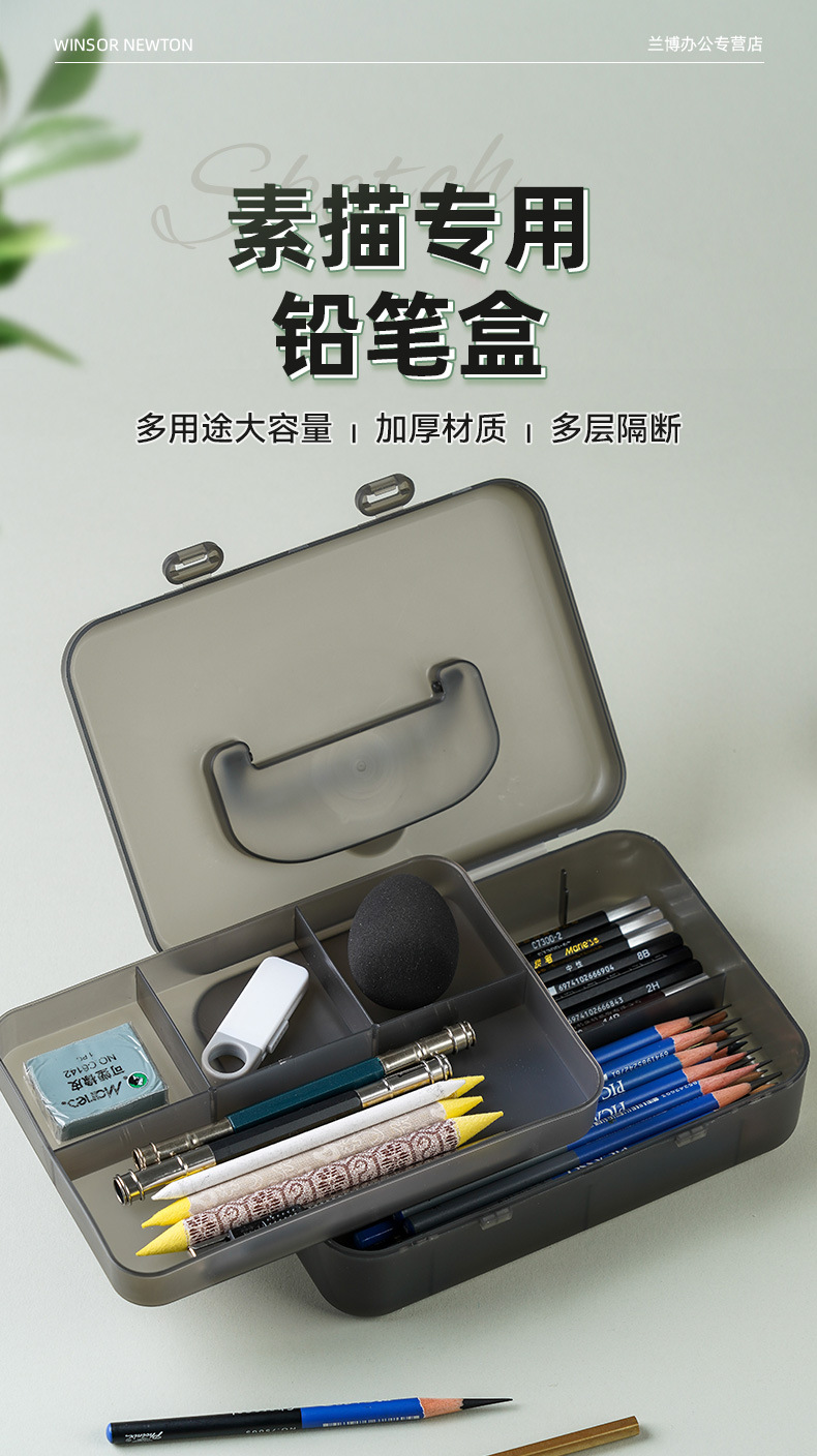 펜 박스 스케치 휴대용 아트 특수 저장 상자 대용량 더블 레이어 연필 상자 투명 도구 문구 상자 플라스틱