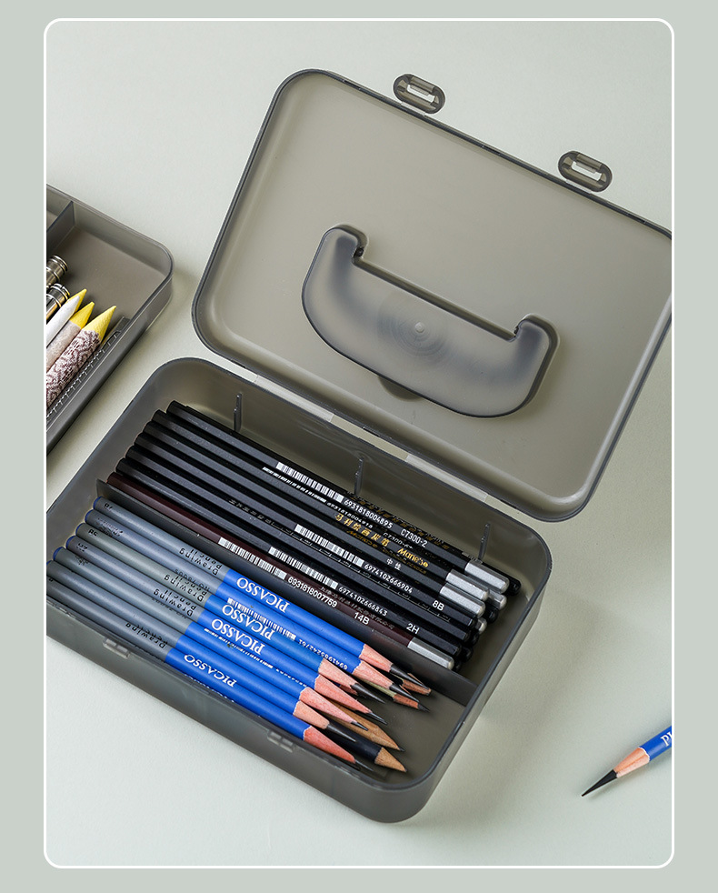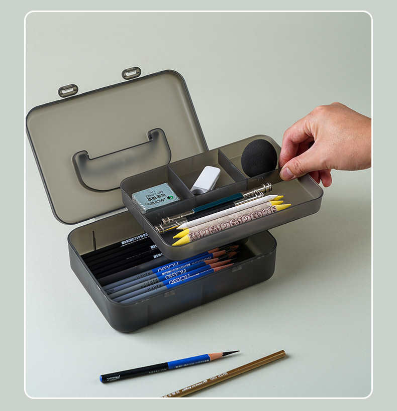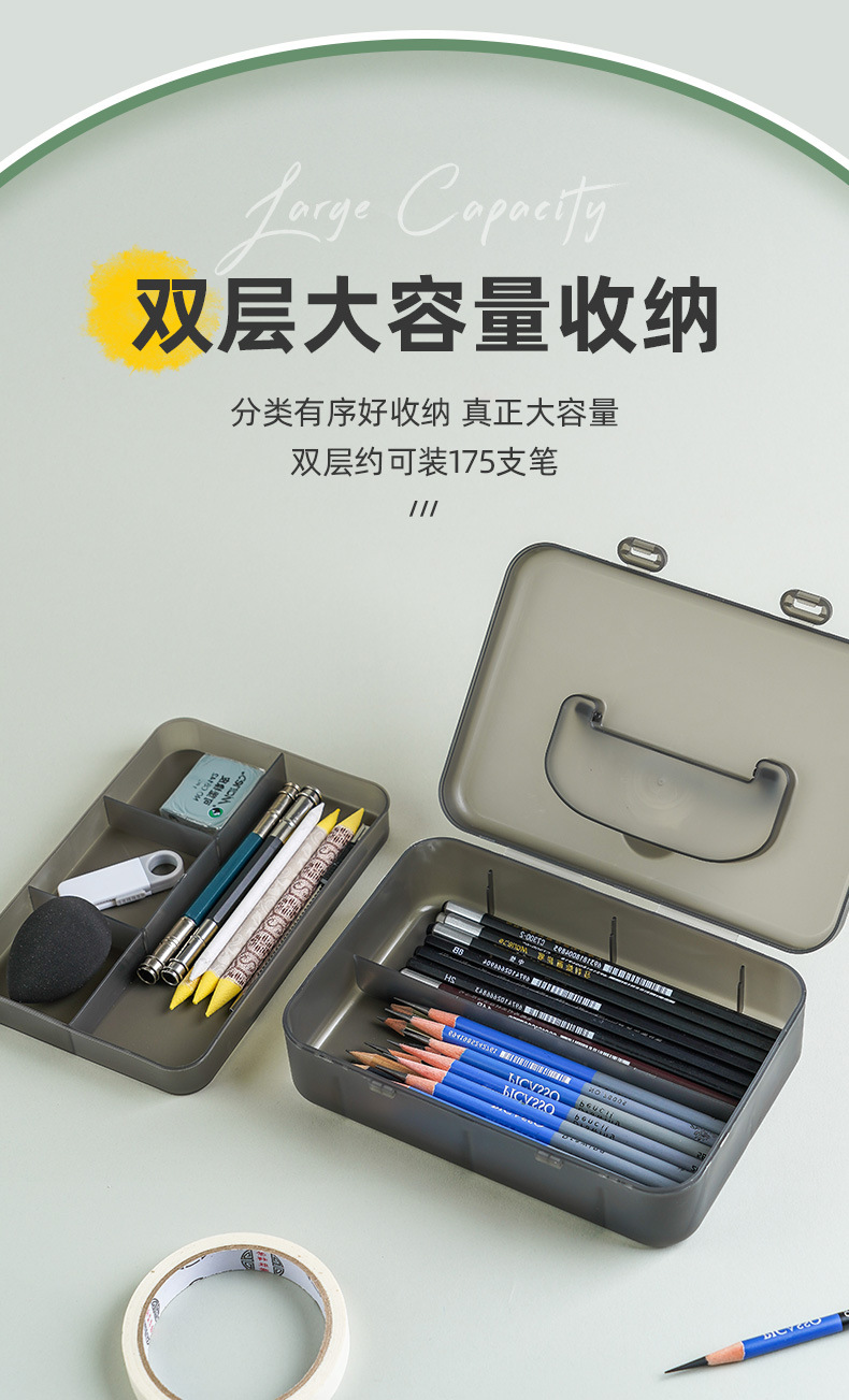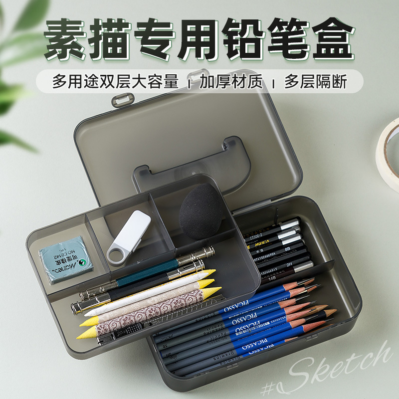 펜 박스 스케치 휴대용 아트 특수 저장 상자 대용량 더블 레이어 연필 상자 투명 도구 문구 상자 플라스틱스토어 가기