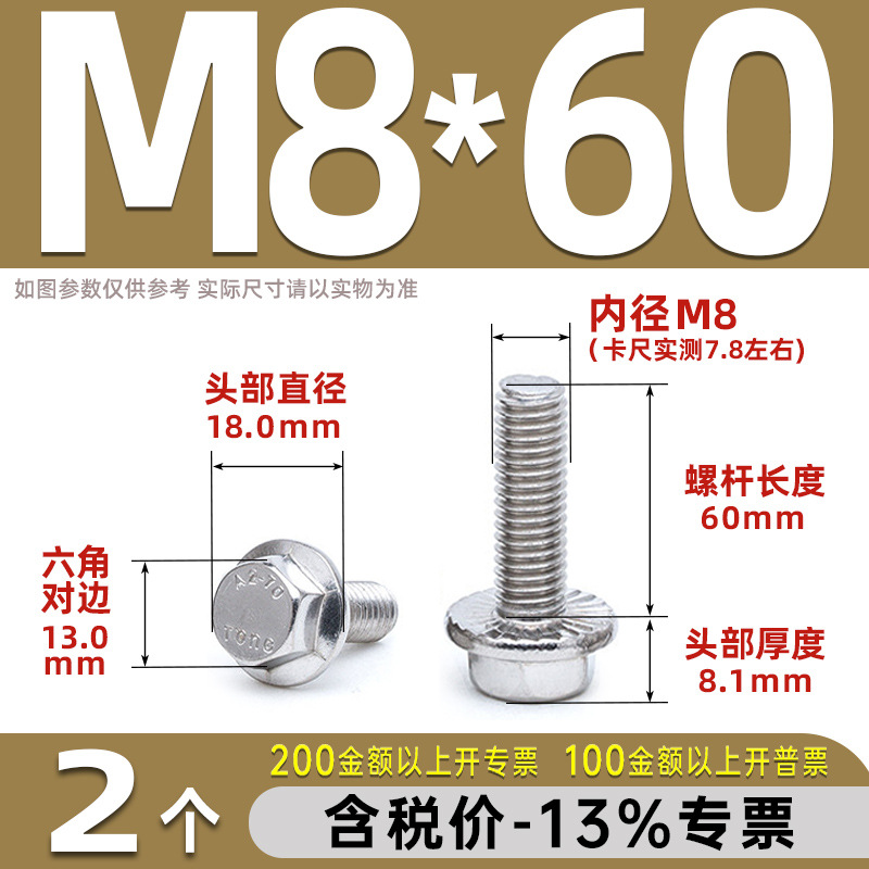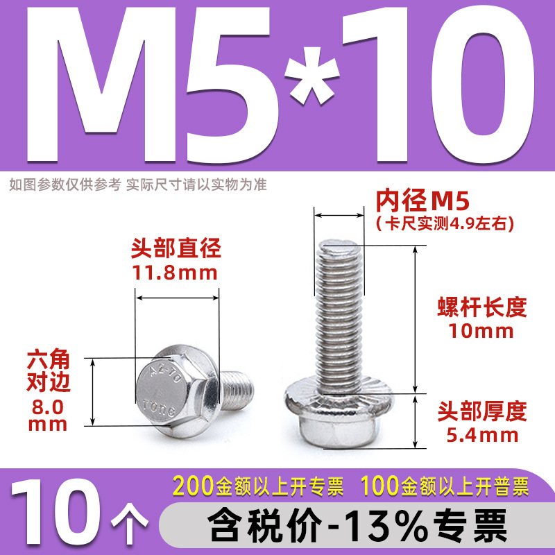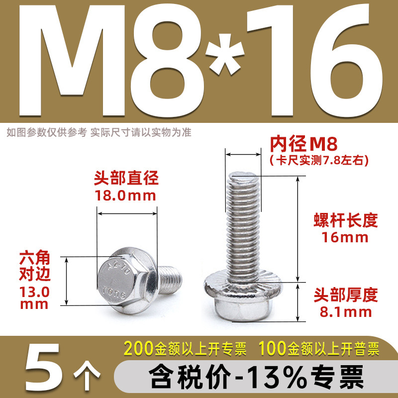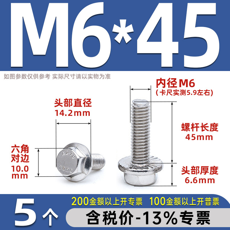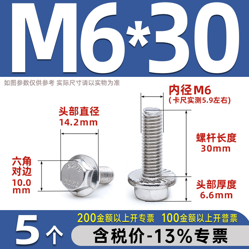 304 스테인레스 스틸 플랜지 얼굴 외부 육각형 스크류 치형 육각 플랜지 5789 빅 헤드 볼트 M5M6M8M10스토어 가기