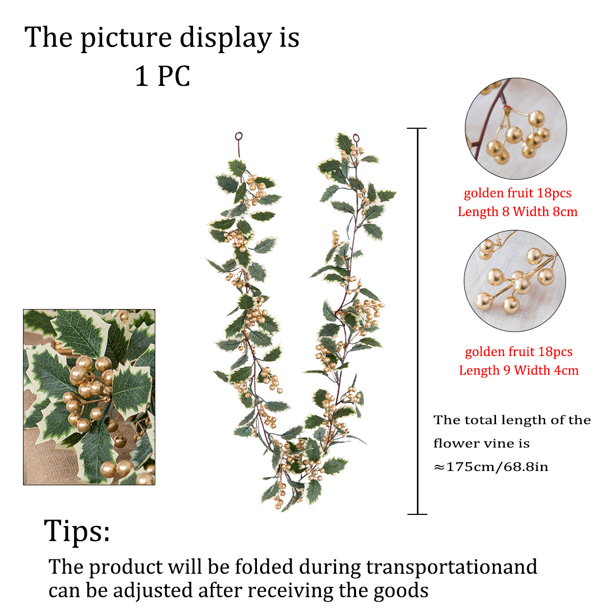 产品名称:圣诞叶36头金果藤条