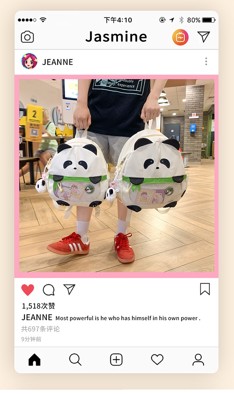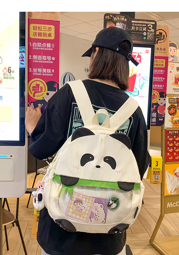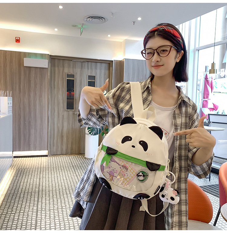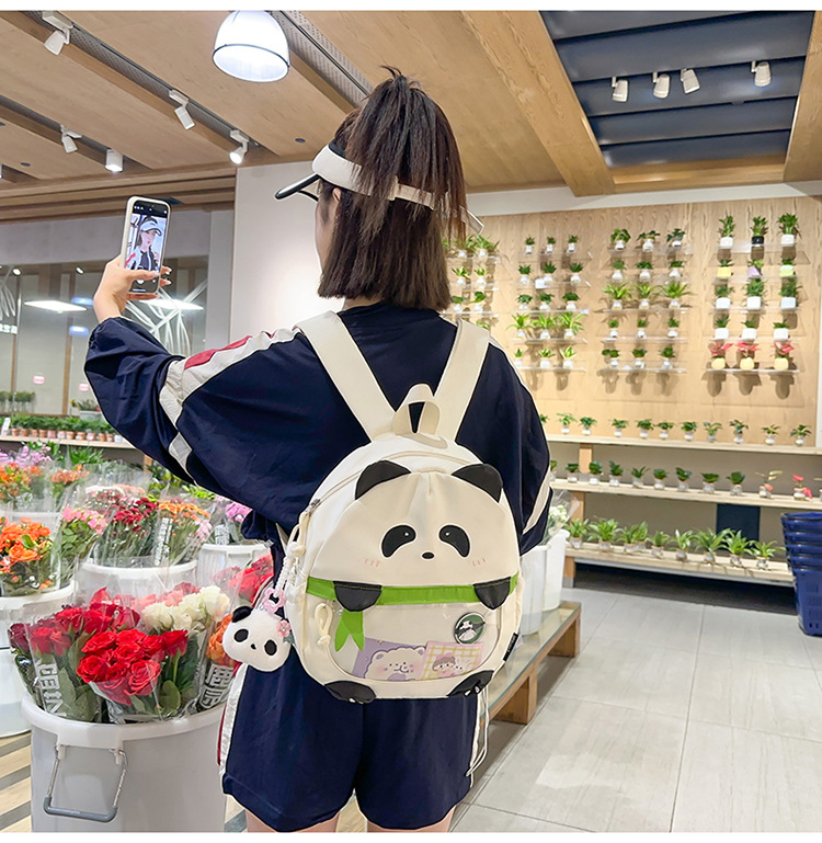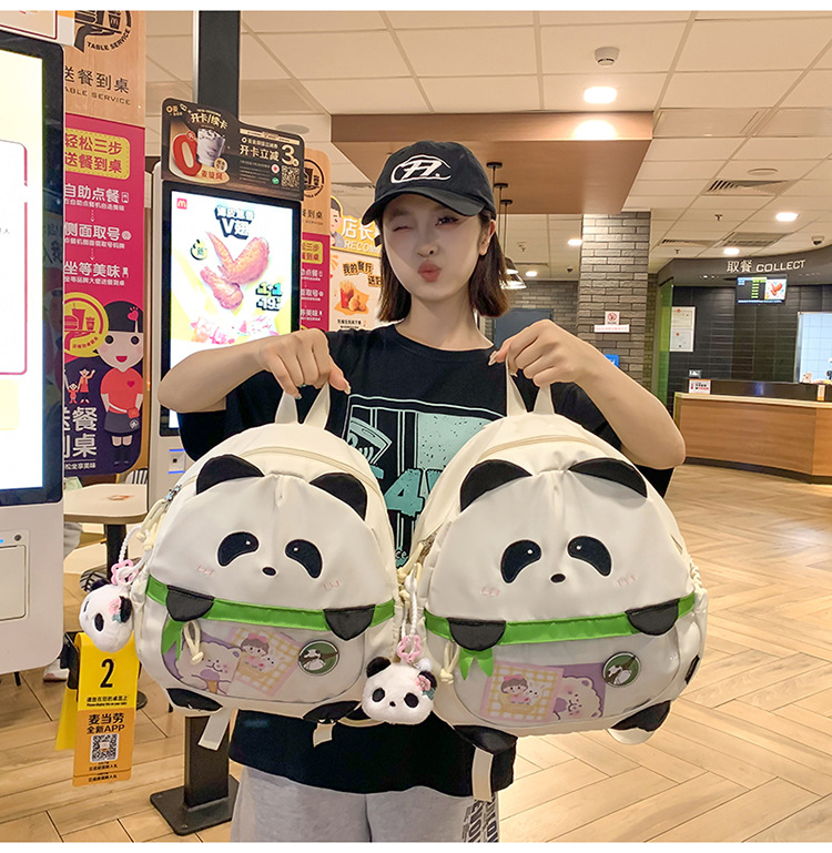 인터넷 축하 만화 어린이 새로운 귀여운 봉제 작은 팬더 대용량 배낭 소녀 캐주얼 외출 배낭스토어 가기