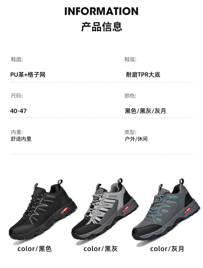 2024 년 가을 남성 신발 통기성 남성 야외 하이킹 신발 방수 미끄럼 방지 운동화 남성용 캐주얼 운동화
