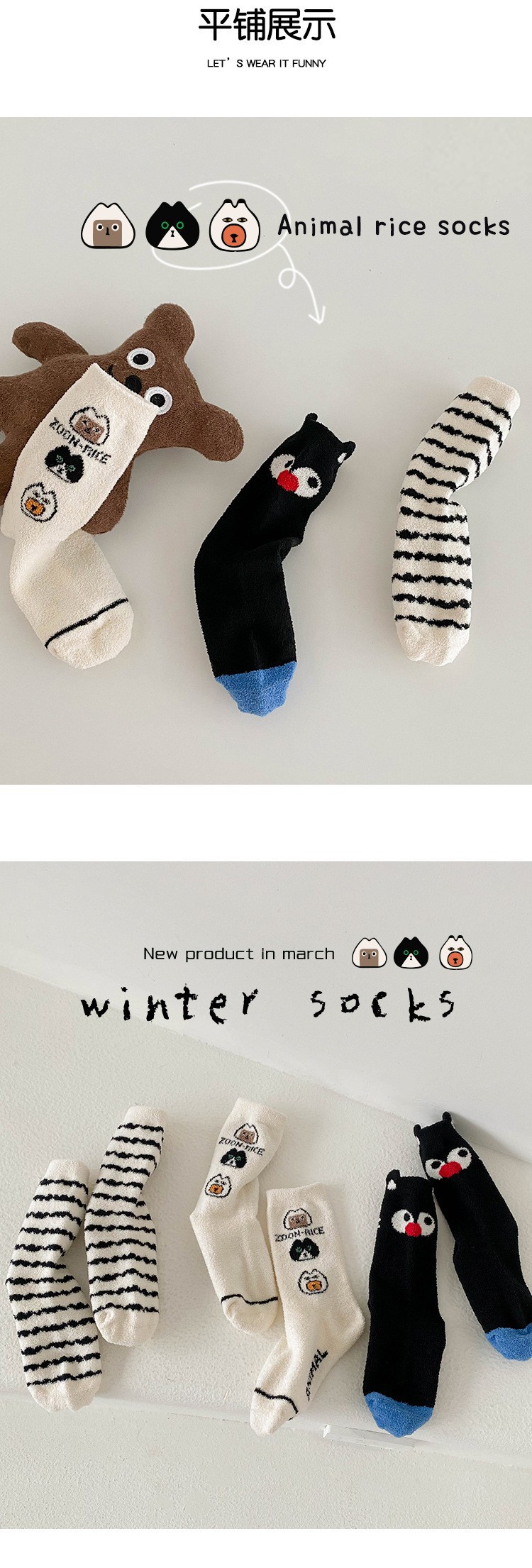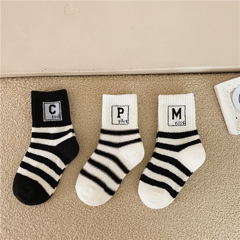 어린이 양말 가을 겨울 한국 스타일 기모 따뜻한 편지 줄무늬 중양말 귀여운 소년 소녀 긴 양말