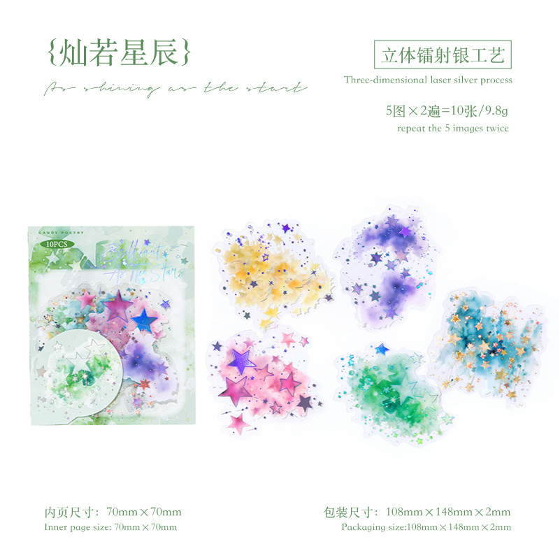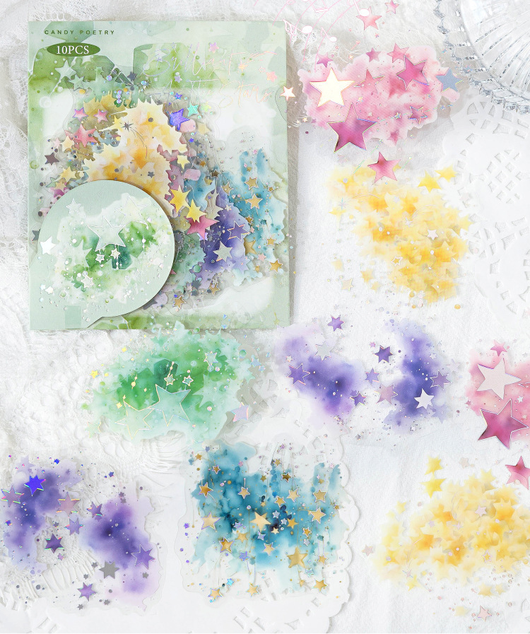 설탕시 PET 스티커 팩 Ambilight 시리즈 판타지 수채화 헤일로 소재 손 계정 통증 팩 DIY 장식 스티커스토어 가기