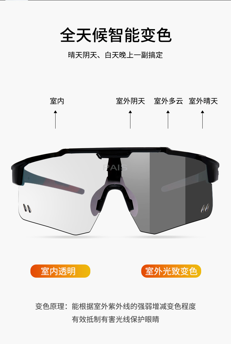 사이클링 색상 변경 안경 야외 달리기 마라톤 자전거 방풍 스포츠 선글라스 투명 안개고글