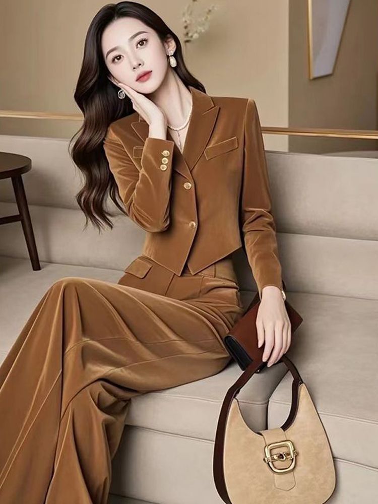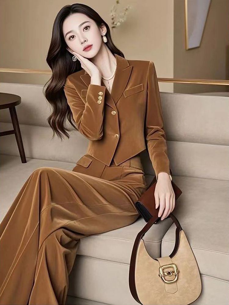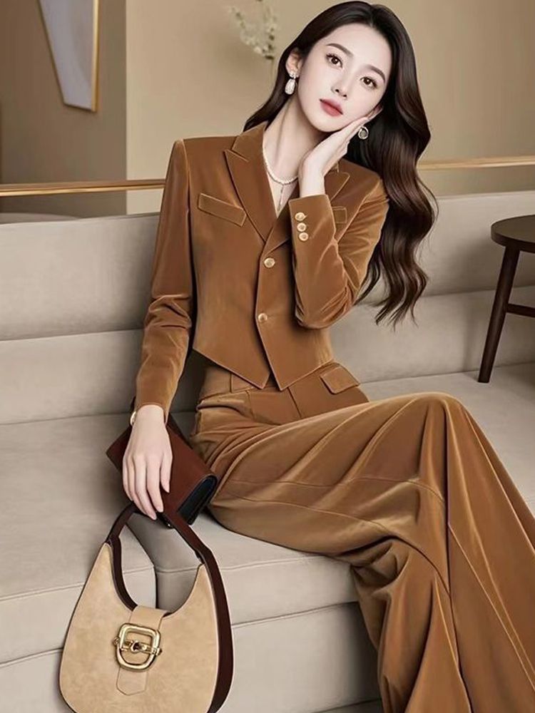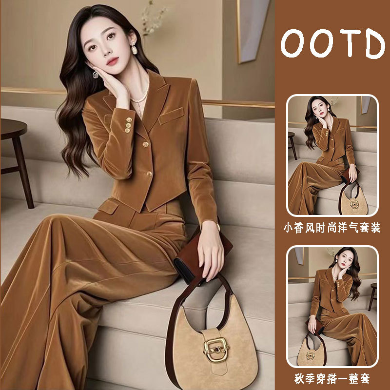 가을은 여성을 세트 하이 엔드 감각 관대 한 괜찮은 패션 웨스턴 스타일 유행 작은 스타일 코트 바지 세트를 착용합니다.스토어 가기