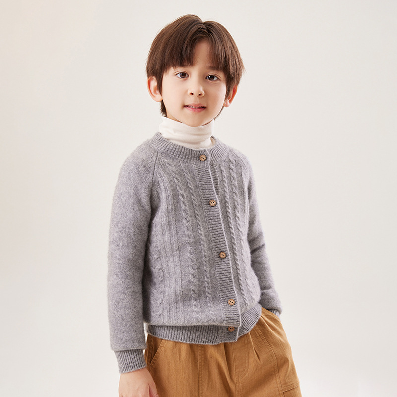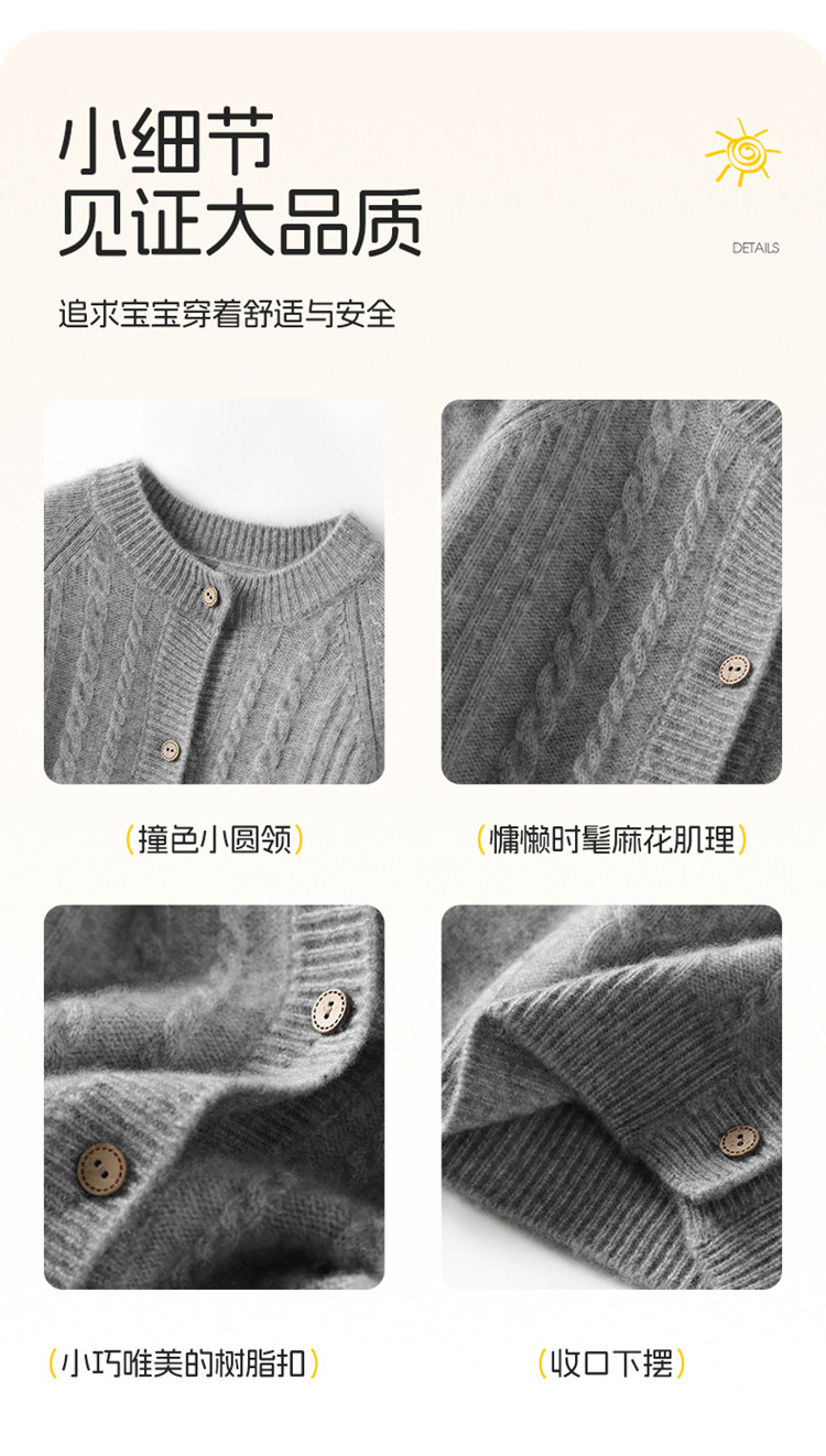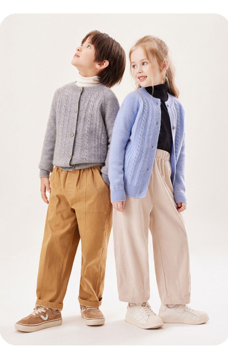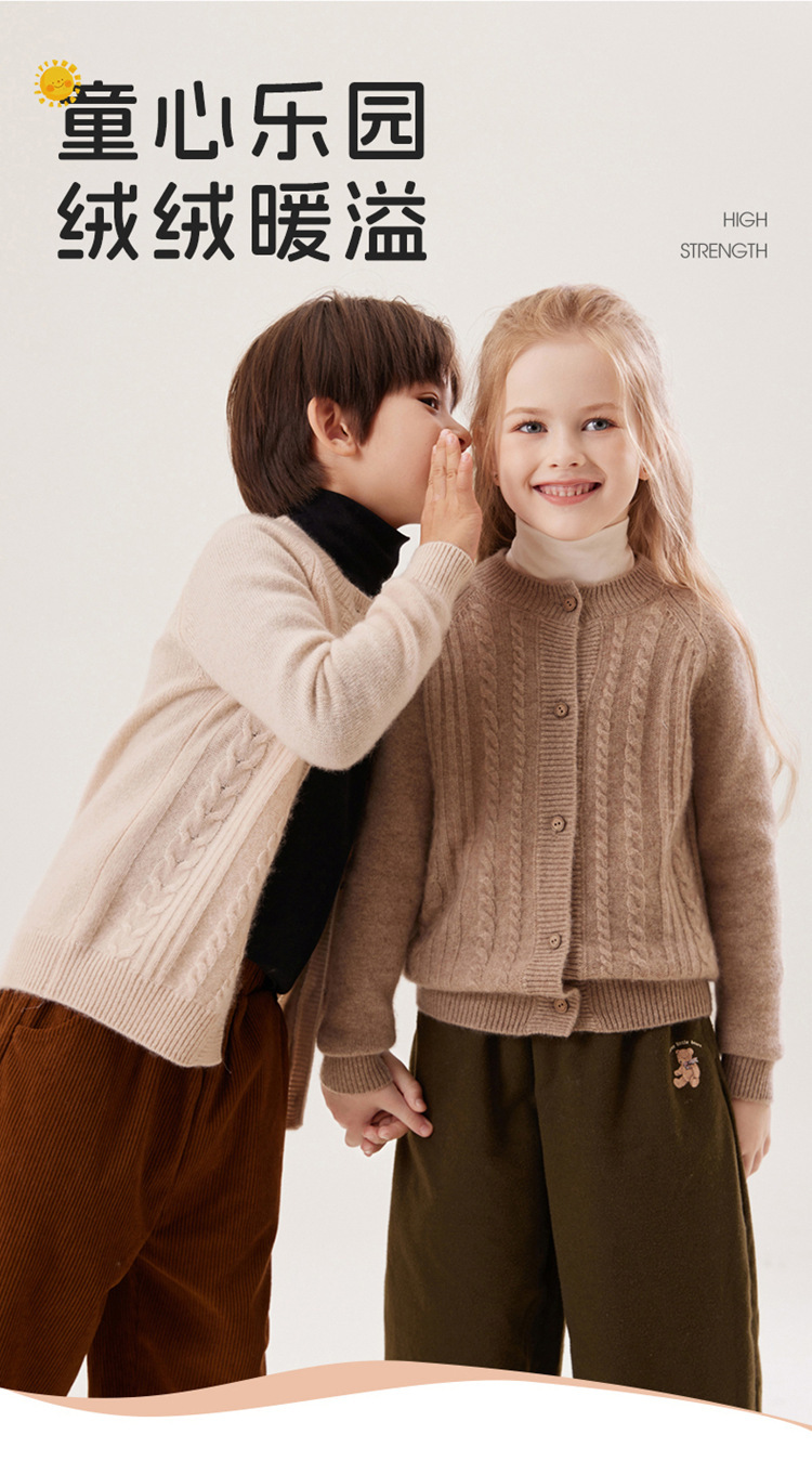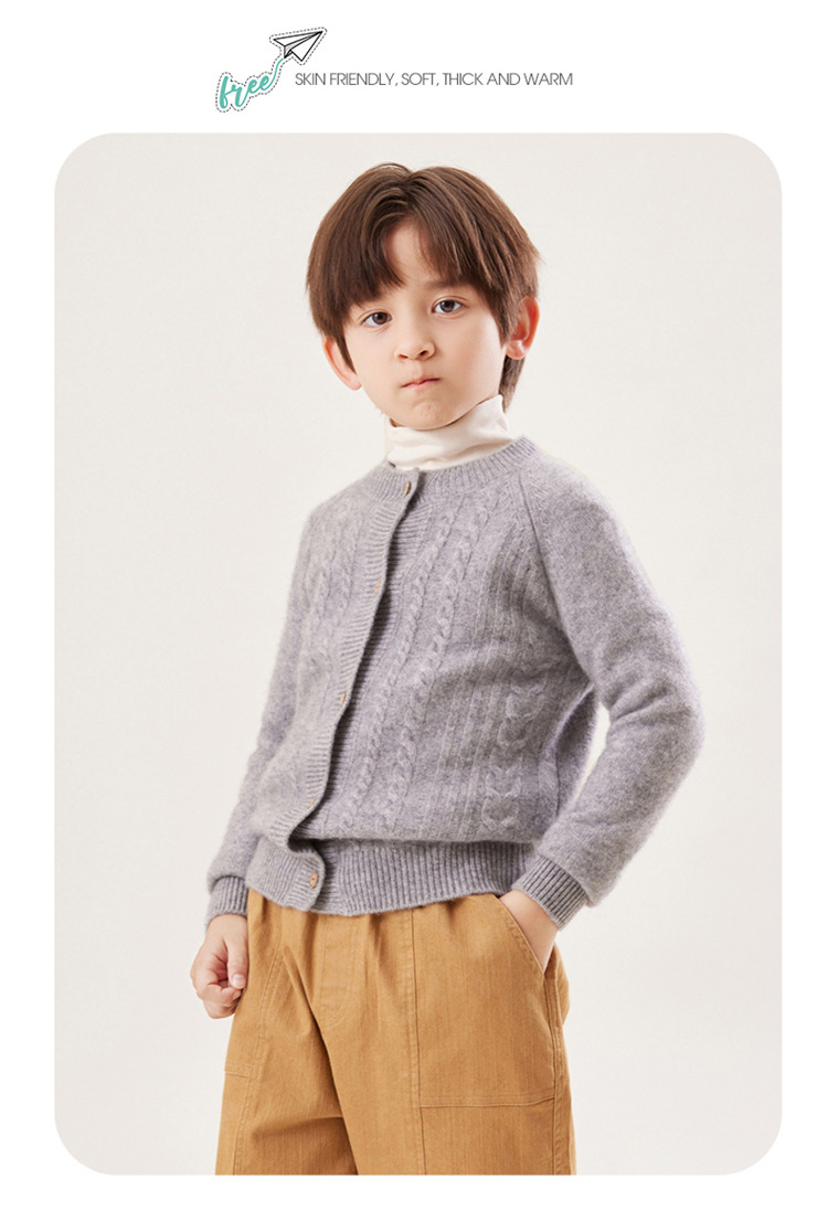 秋冬儿童山羊绒开衫外套男孩女孩加厚宝宝羊绒毛衣针织衫跨境
