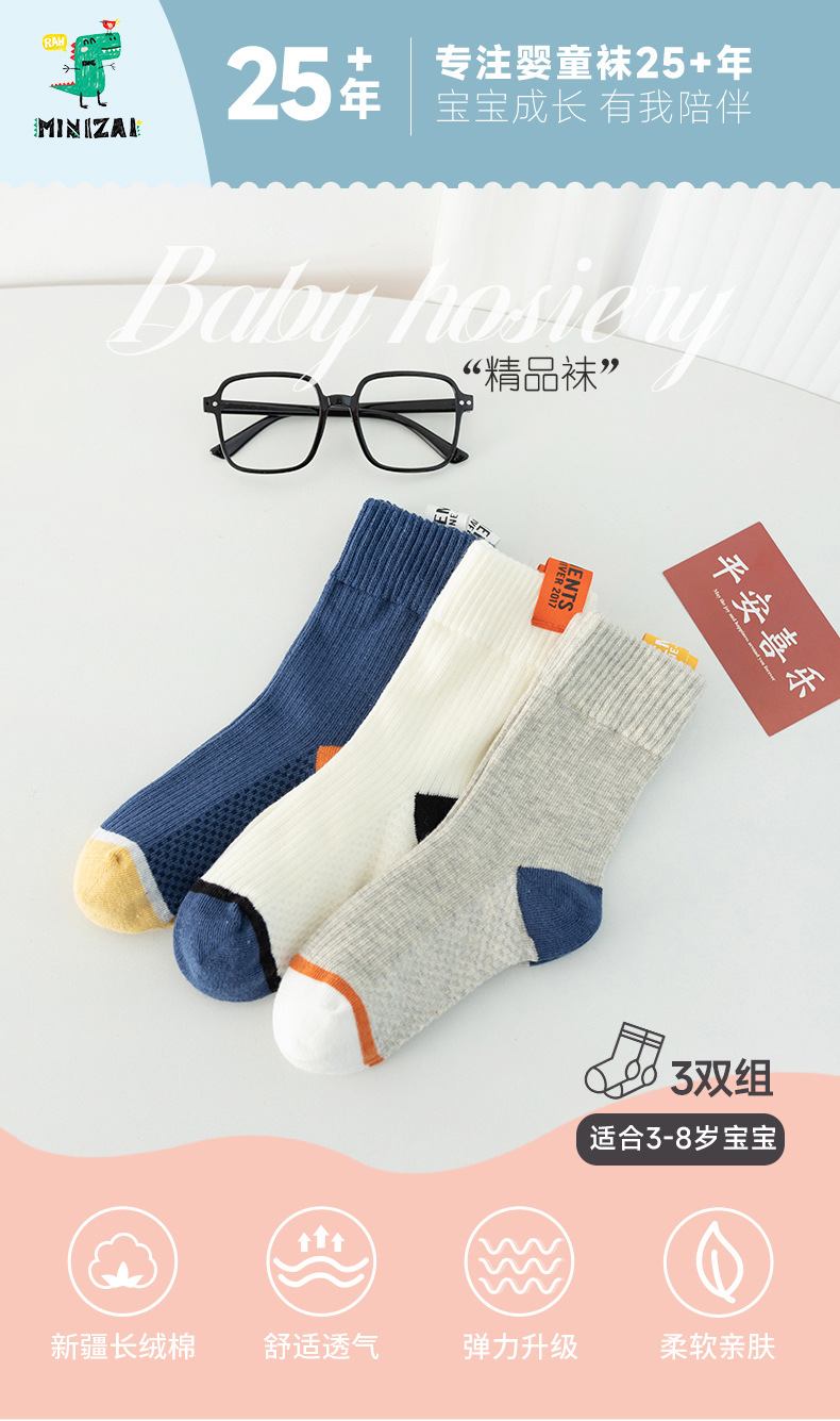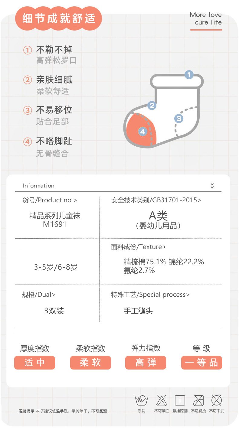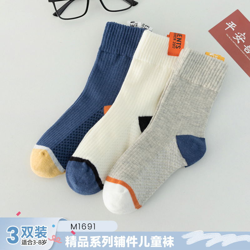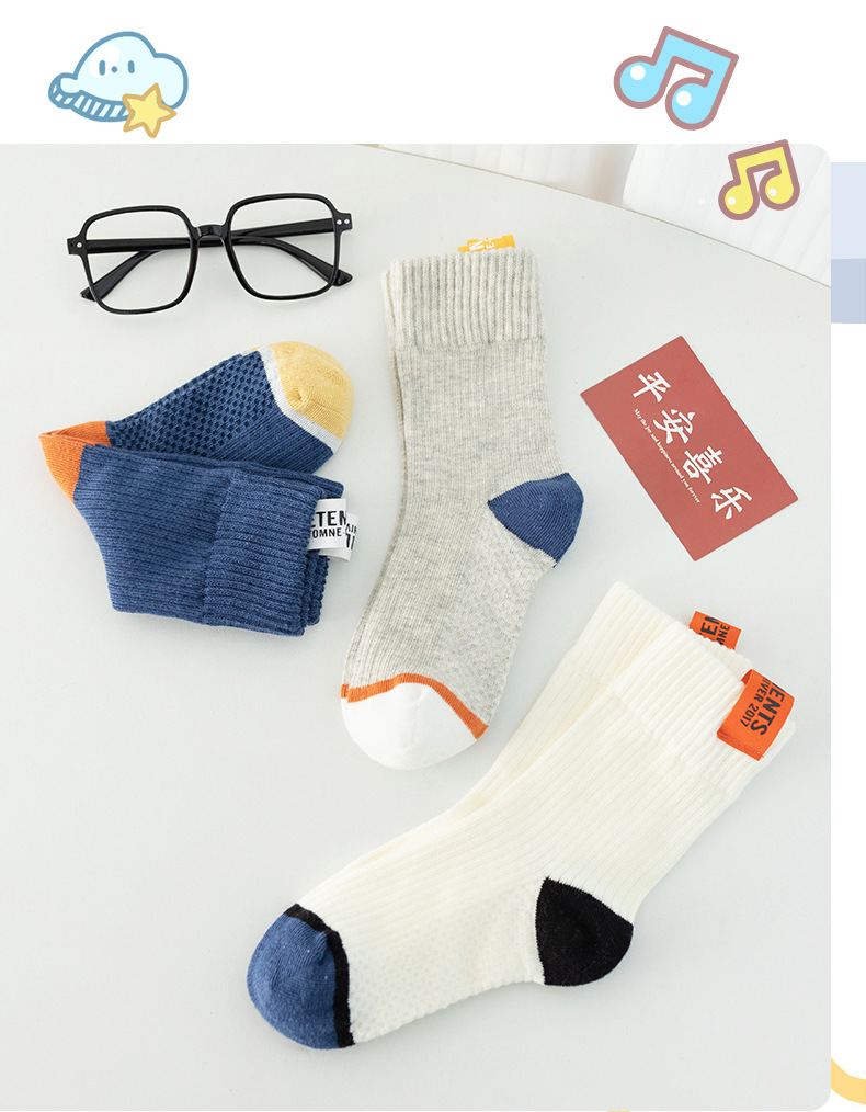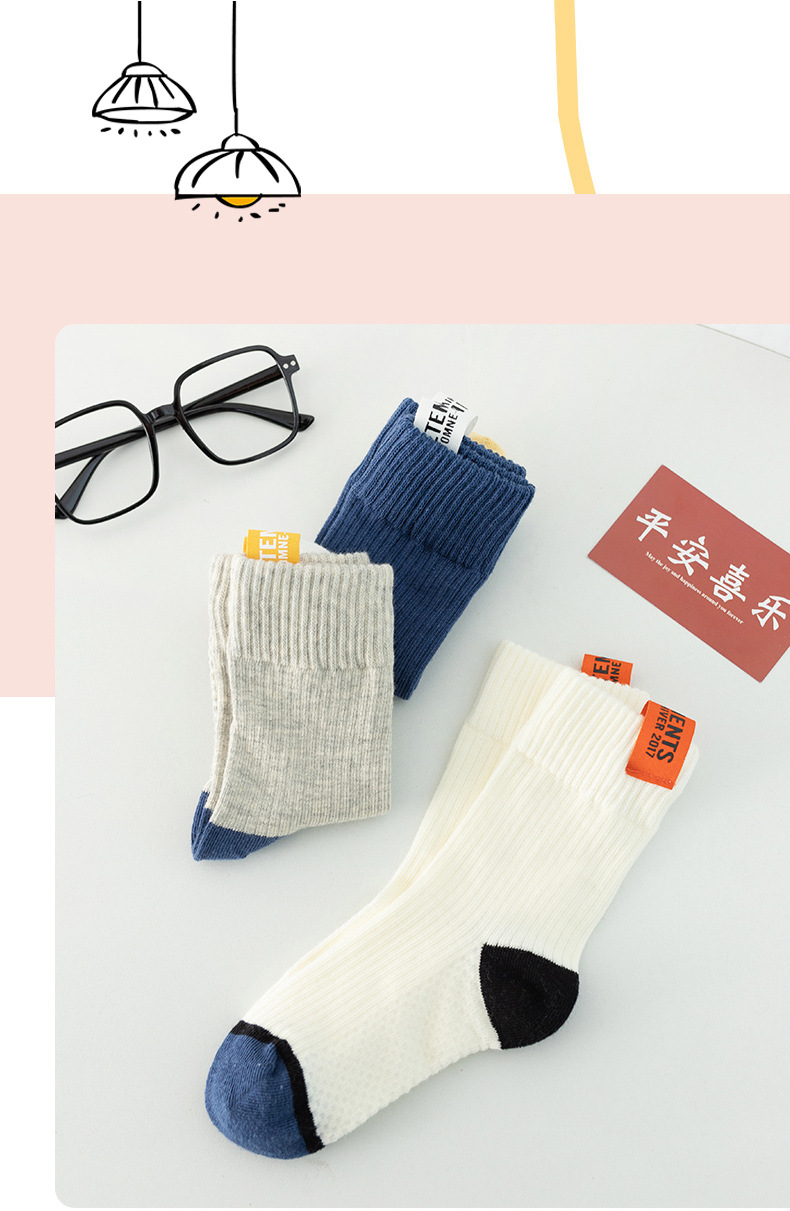2024 가을과 겨울 새로운 트렌디 한 단색 천 라벨 장식 어린이 양말 코튼 뼈없는 손 재봉 클래스 A