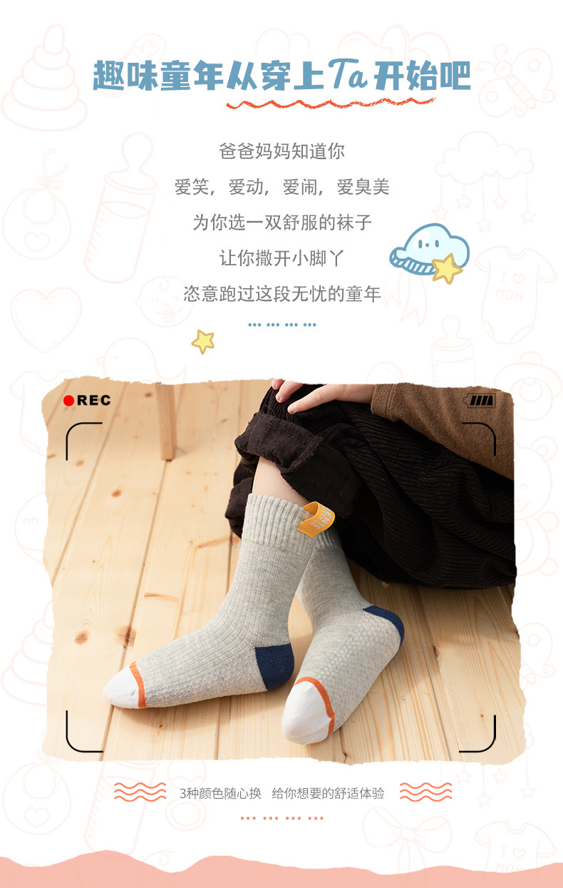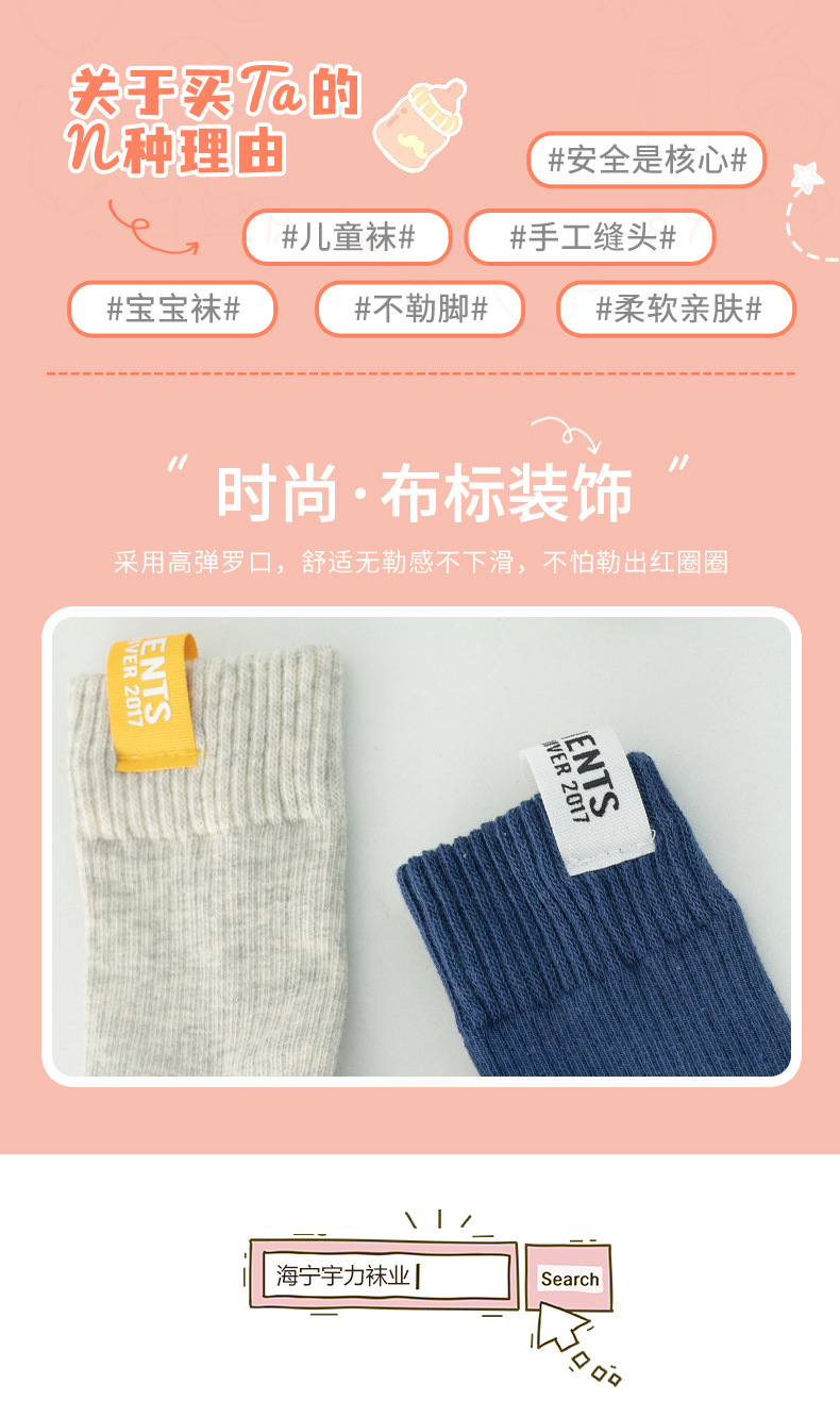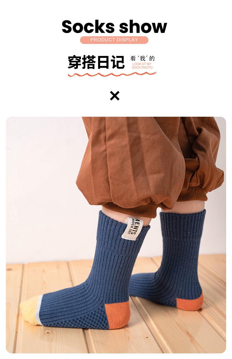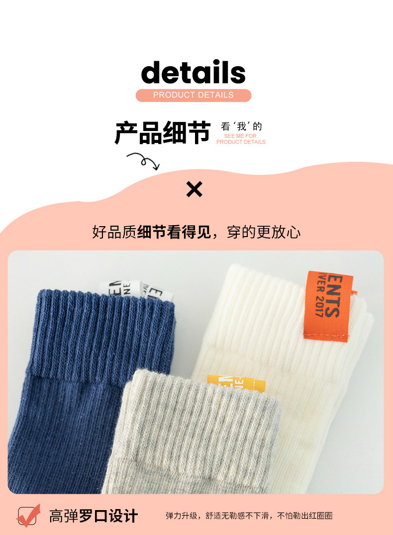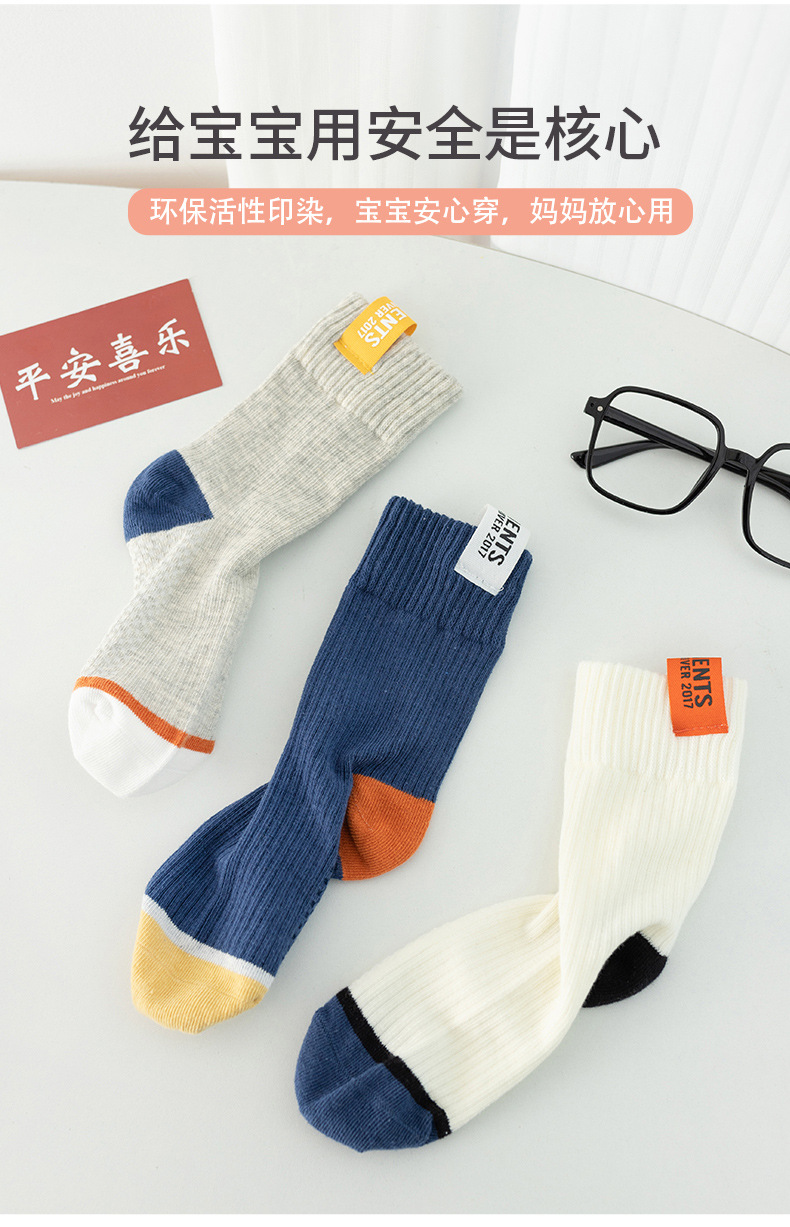 2024 가을과 겨울 새로운 트렌디 한 단색 천 라벨 장식 어린이 양말 코튼 뼈없는 손 재봉 클래스 A스토어 가기