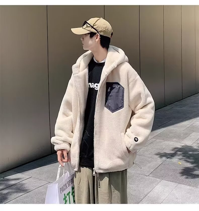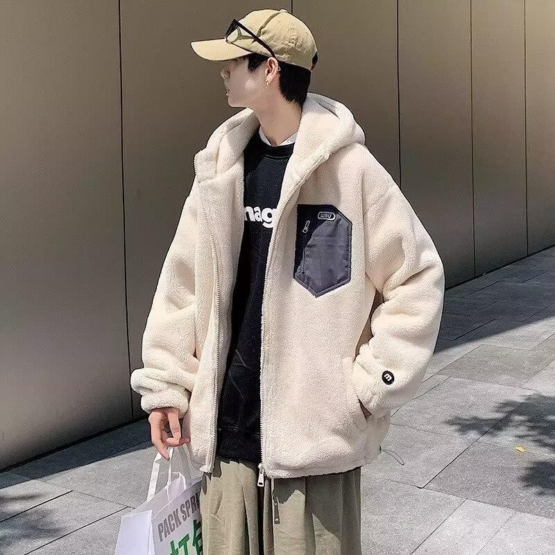 한국 스타일의 트렌디 한 기모 남성면 패딩 코트 하이 퀄리티 양모 면봉 재킷 코트스토어 가기